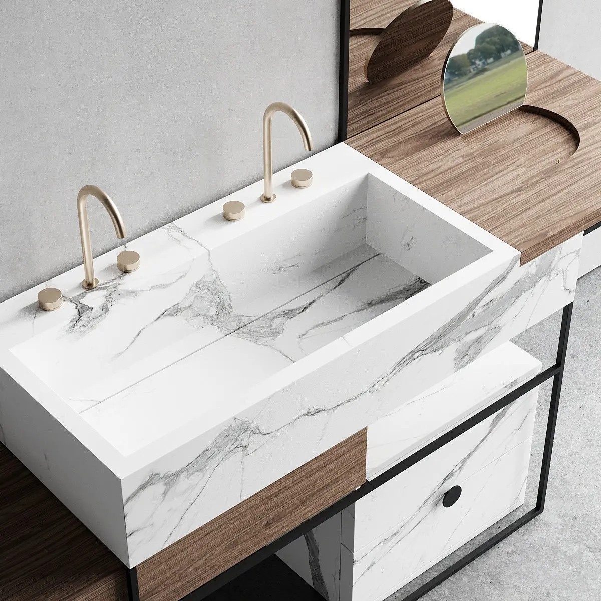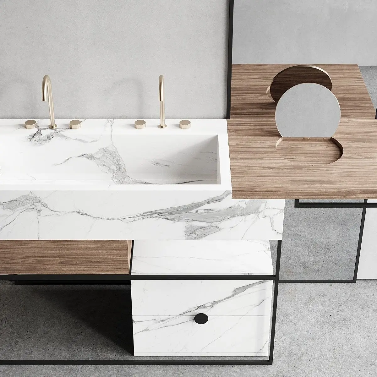 Collection - ItalgranitiLIVEType - Floor-standing double porcelain stoneware vanity unitMaterials - Metal, Porcelain stonewareDesigners - Centro Stile Milano ArchitettiManufacture year - 2019Product code - ACQA000001