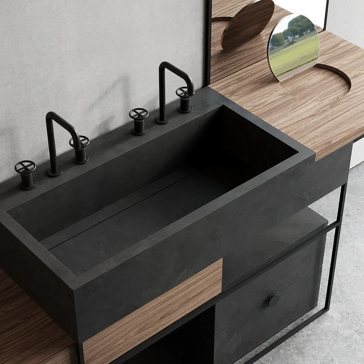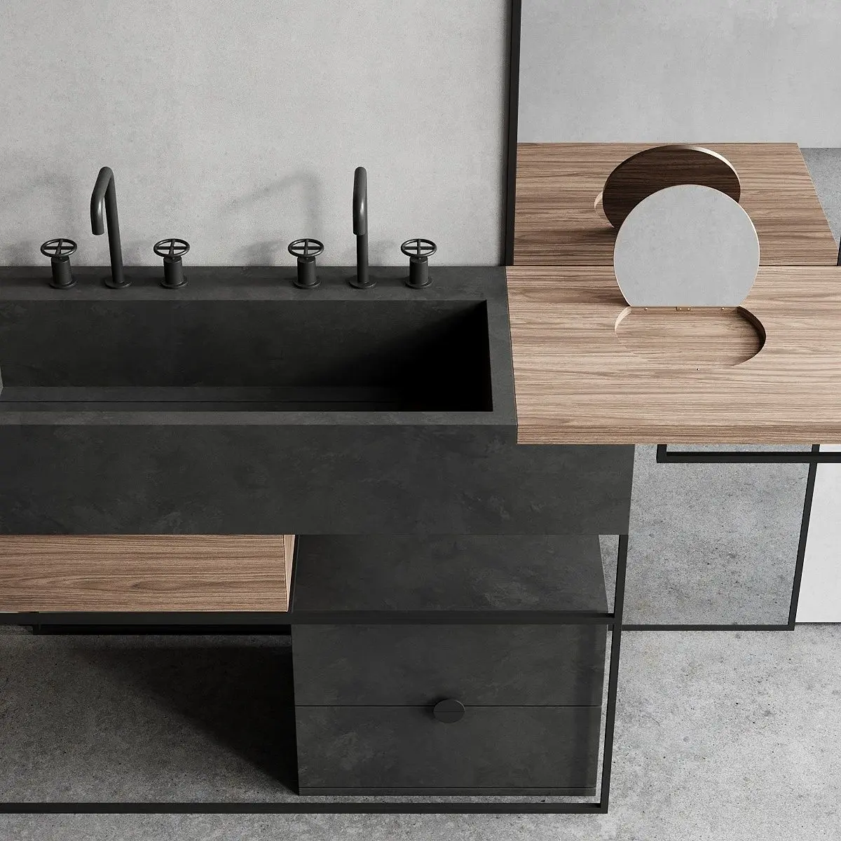 Collection - ItalgranitiLIVEType - Floor-standing double porcelain stoneware vanity unitMaterials - Metal, Porcelain stonewareDesigners - Centro Stile Milano ArchitettiManufacture year - 2019Product code - ACQA000001