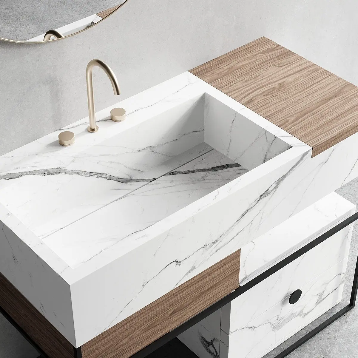 Collection - ItalgranitiLIVEType - Floor-standing porcelain stoneware vanity unit with drawersMaterials - Metal, Porcelain stonewareDesigners - Centro Stile Milano ArchitettiManufacture year - 2019Product code - ACQC000001Dimensions: Width - 1200mm Depth - 550mm Height - 900mm