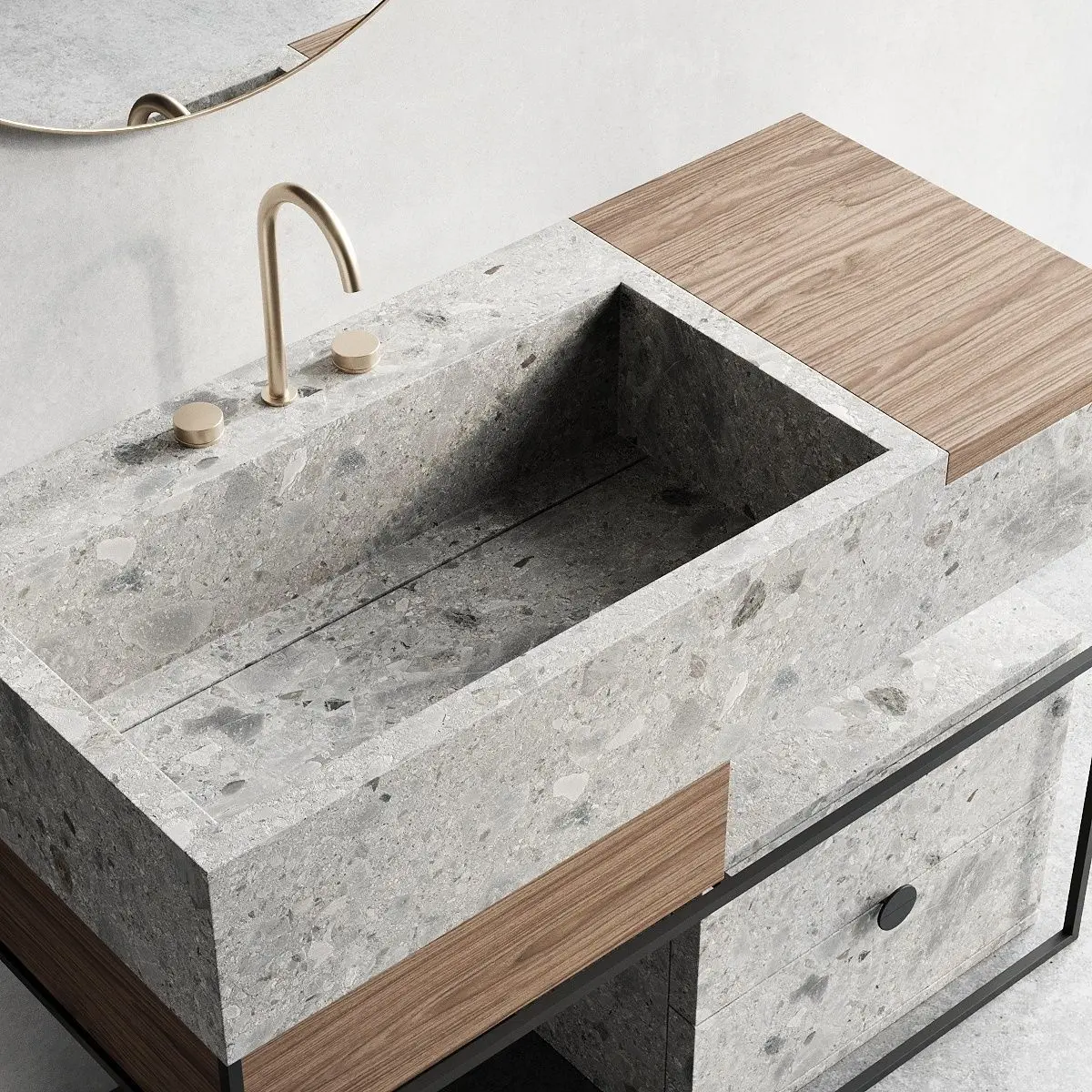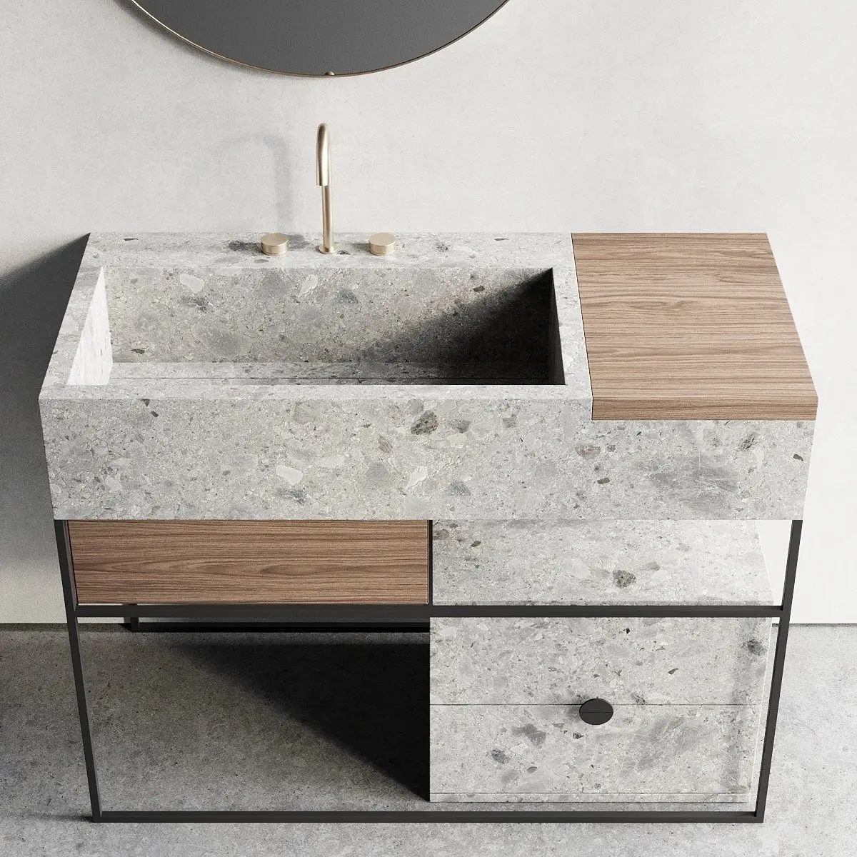Collection - ItalgranitiLIVEType - Floor-standing porcelain stoneware vanity unit with drawersMaterials - Metal, Porcelain stonewareDesigners - Centro Stile Milano ArchitettiManufacture year - 2019Product code - ACQC000001