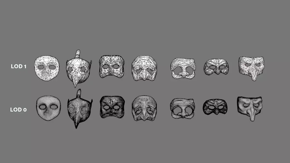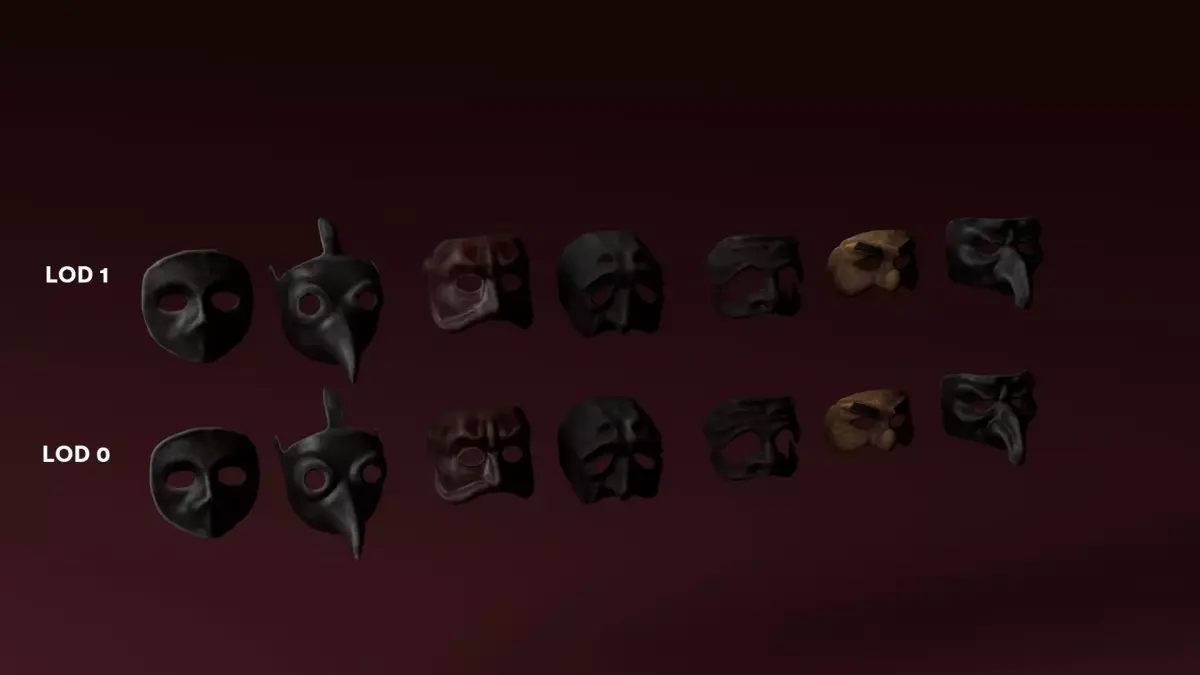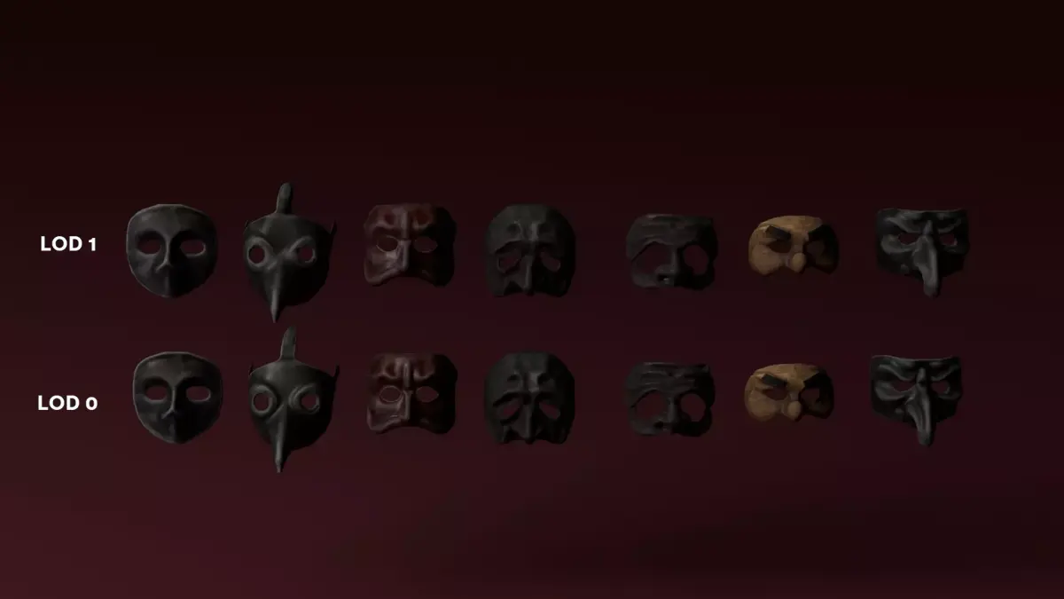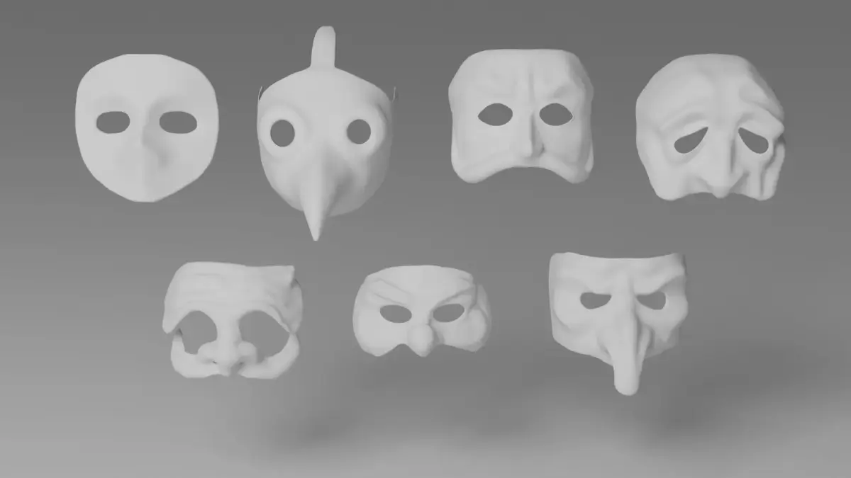 Traditional Italian masks created in Blender, containing 7 models and 7 LODs.