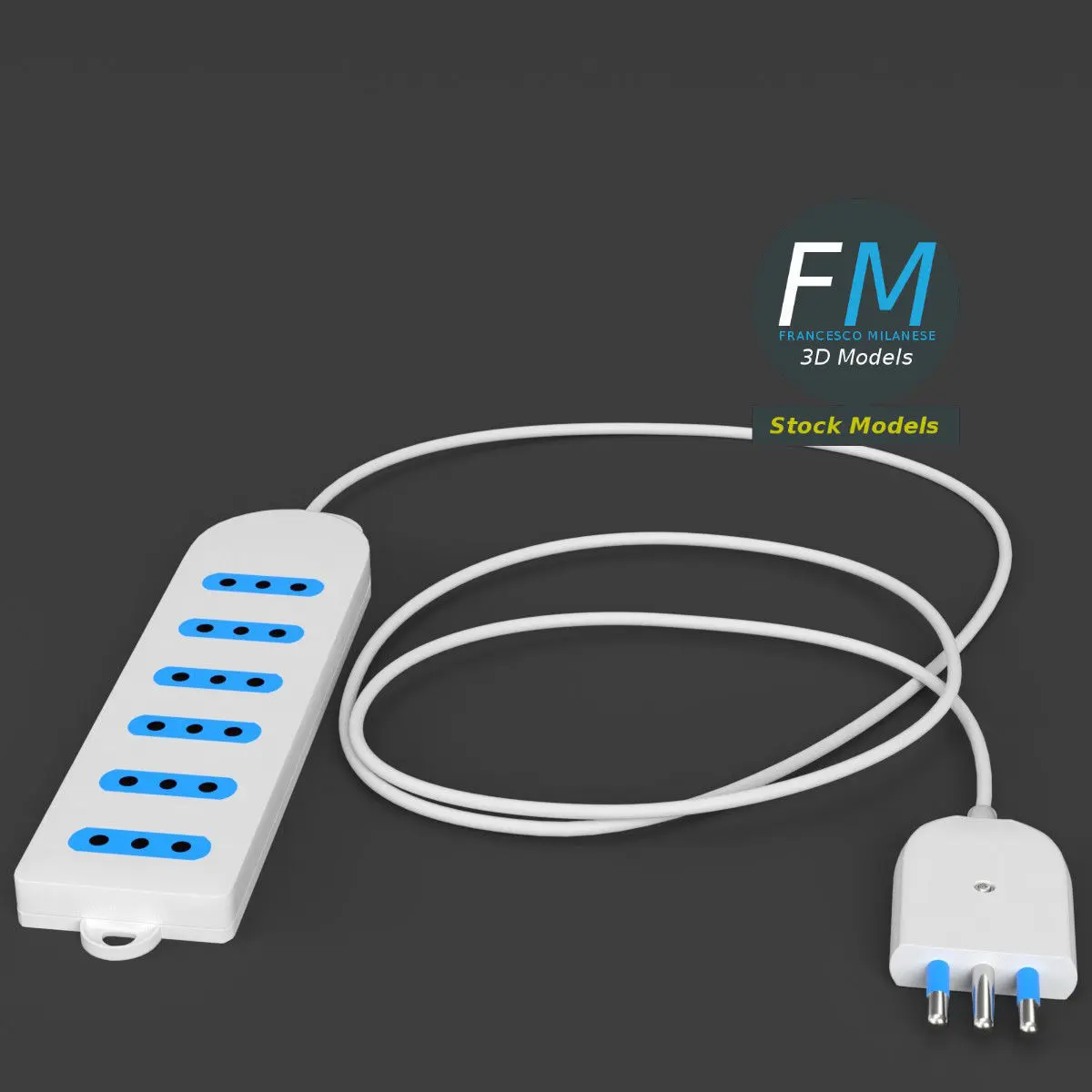 Italian power strip 3D Model. Production-ready 3D Model, with PBR materials, textures, non overlapping UV Layout map provided in the package.
