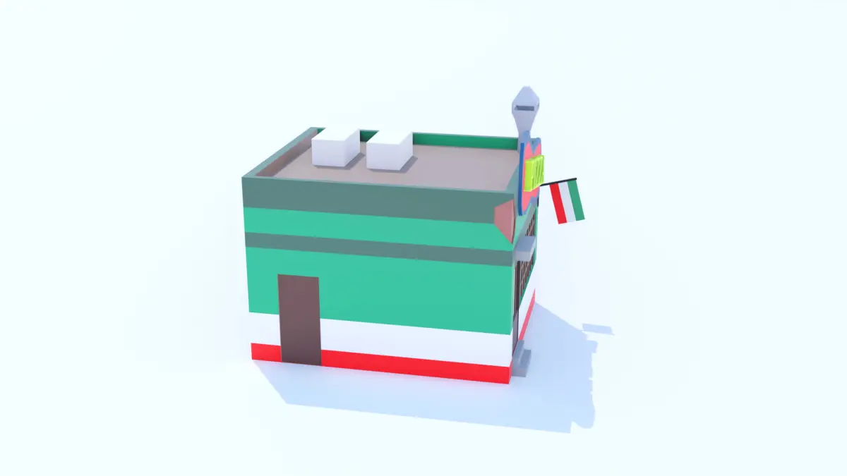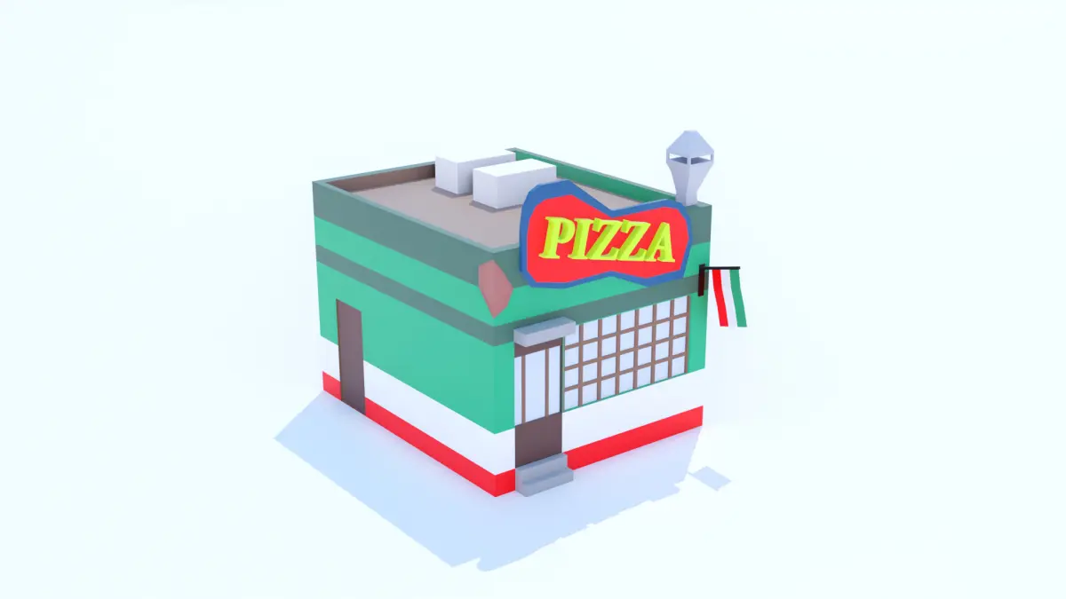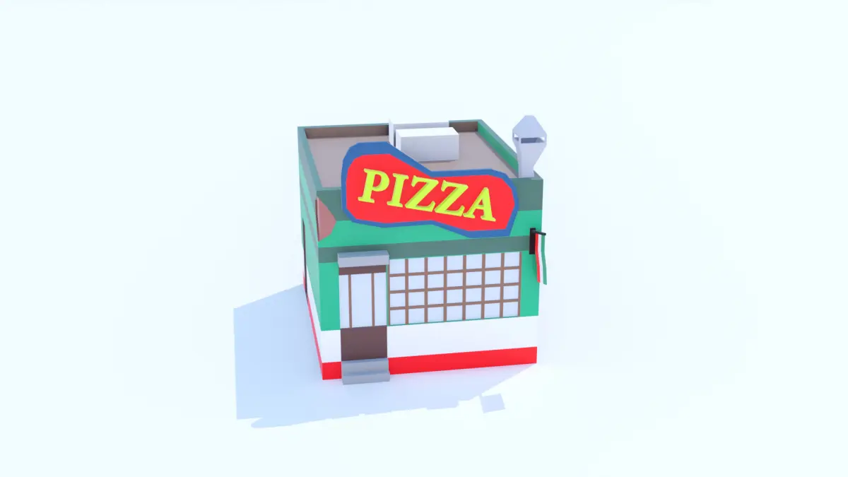 A charming pizzeria restaurant with a striking sign and details that evoke the authentic Italian style. Perfect for urban settings or small plazas with a traditional feel. Its warm colors and welcoming facade invite the imagination to a place full of life and the aroma of freshly baked pizza. A compact yet detailed design that fits different settings without sacrificing performance. Its classic aesthetic is ideal for creating lively streets full of personality. A perfect gathering spot in any town or city.