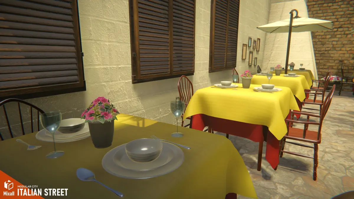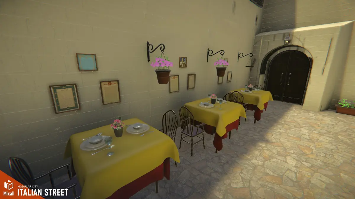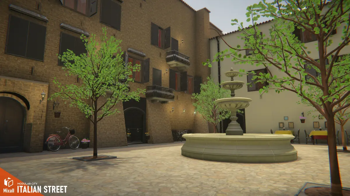 Mixall studio presents a good solution for your games, VR projects and simulators: Venice street - modular city. Immerse yourself in the beauty of Italian streets with Italian Streets - Modular City. This asset collection offers a wide range of modular buildings, roads, and various props that can be easily assembled to create a realistic and customizable cityscape. The buildings are designed to capture the essence of Italian architecture, featuring intricate details, vibrant textures, and authentic materials. With these modular pieces, you can construct unique city blocks that reflect the charm and character of Italian streets. Key Features modular streetsmany high quality propsarchitecture with high-quality textures and materialsgame ready demo scene Assets BuildingsProps: Bicycle, Cafe props, Decals, Fountain, Street propsPlants: Flower_pots, Flowers, Tree