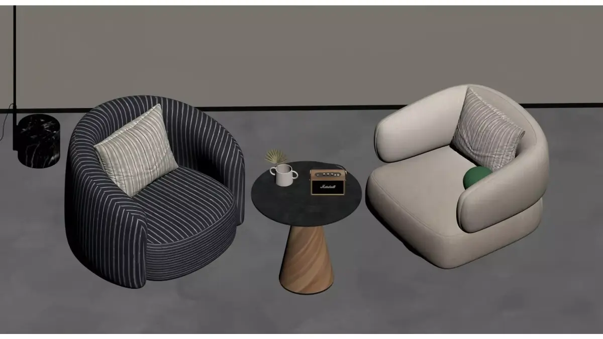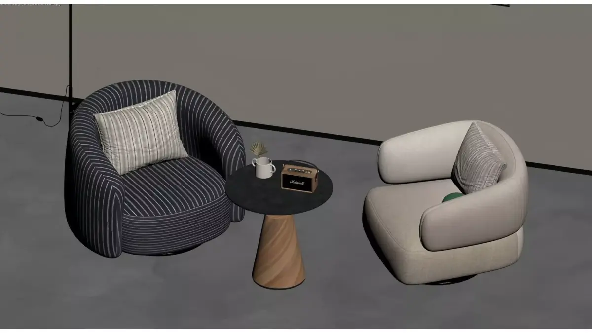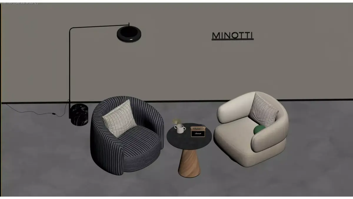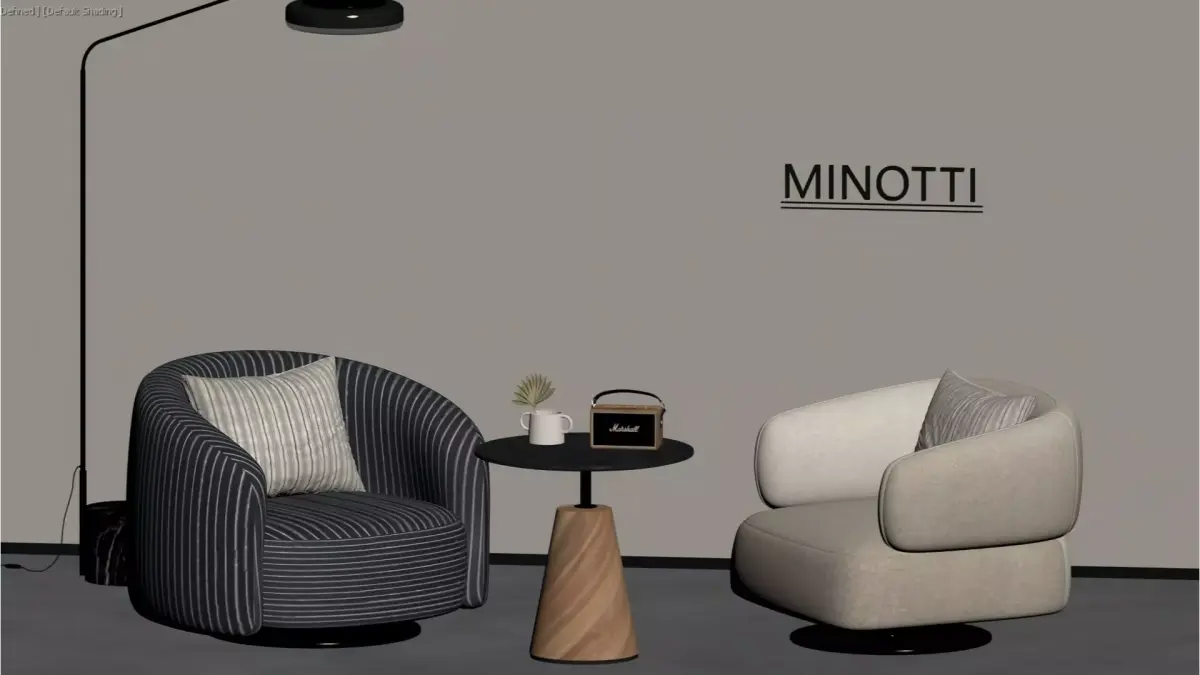 This is a set of Italian minimalist-style leisure chairs from the Minotti brand. Centered on soft curved shapes and a wrap-around design, it is paired with striped/solid-color fabric upholstery and brass-textured swivel bases, combining comfortable seating experience with artistic aesthetics. The overall style is luxurious and high-end, suitable for modern minimalist, Italian light luxury and other home spaces, and serves as a finishing touch to enhance the texture of soft furnishings.