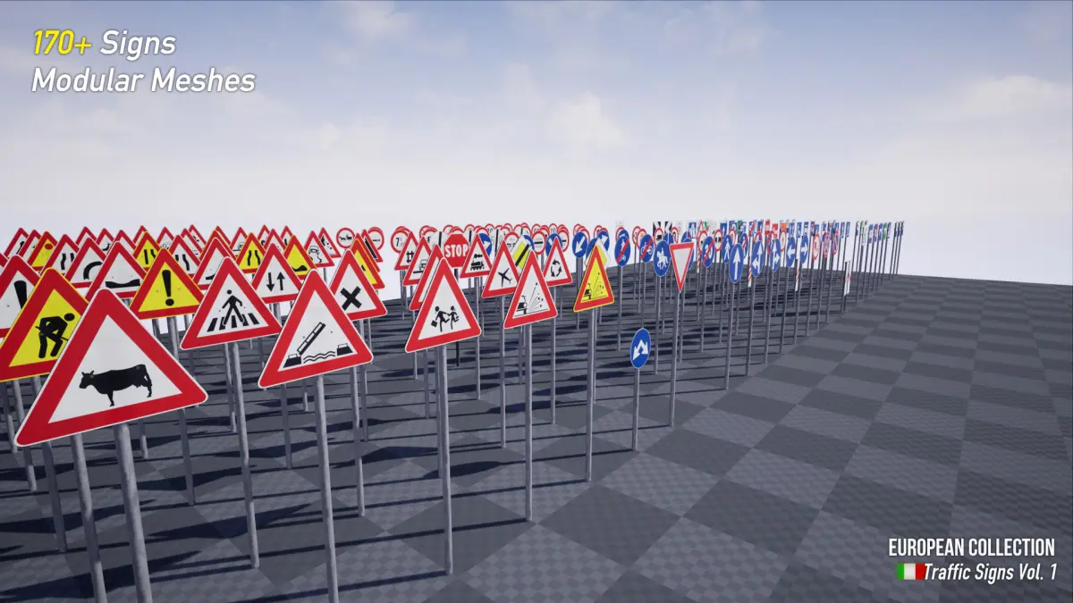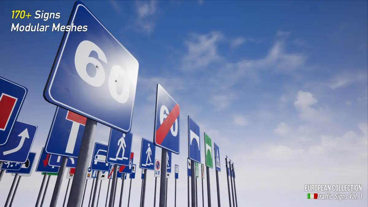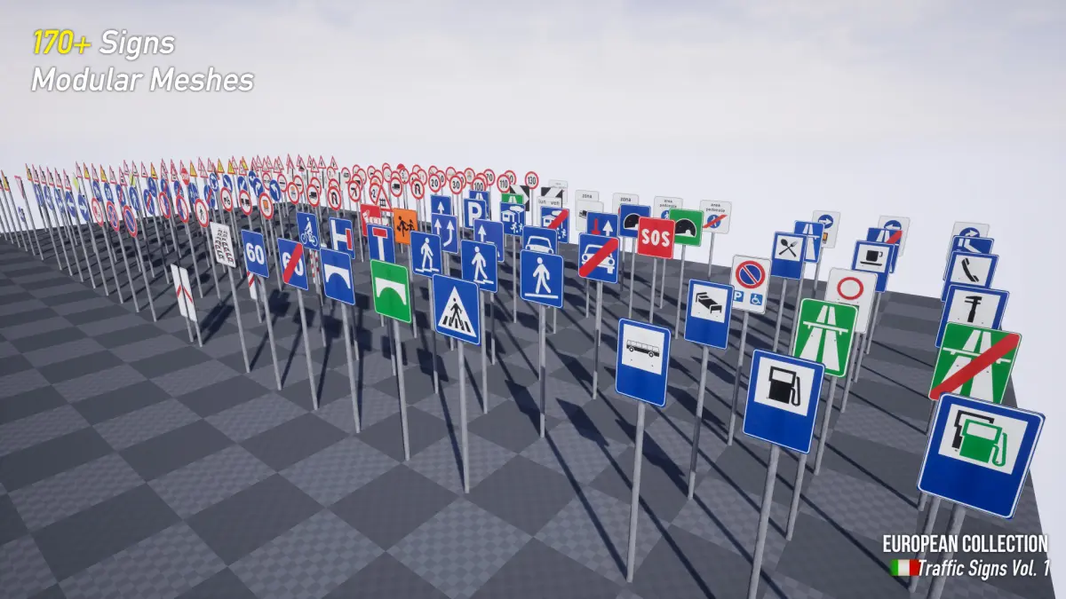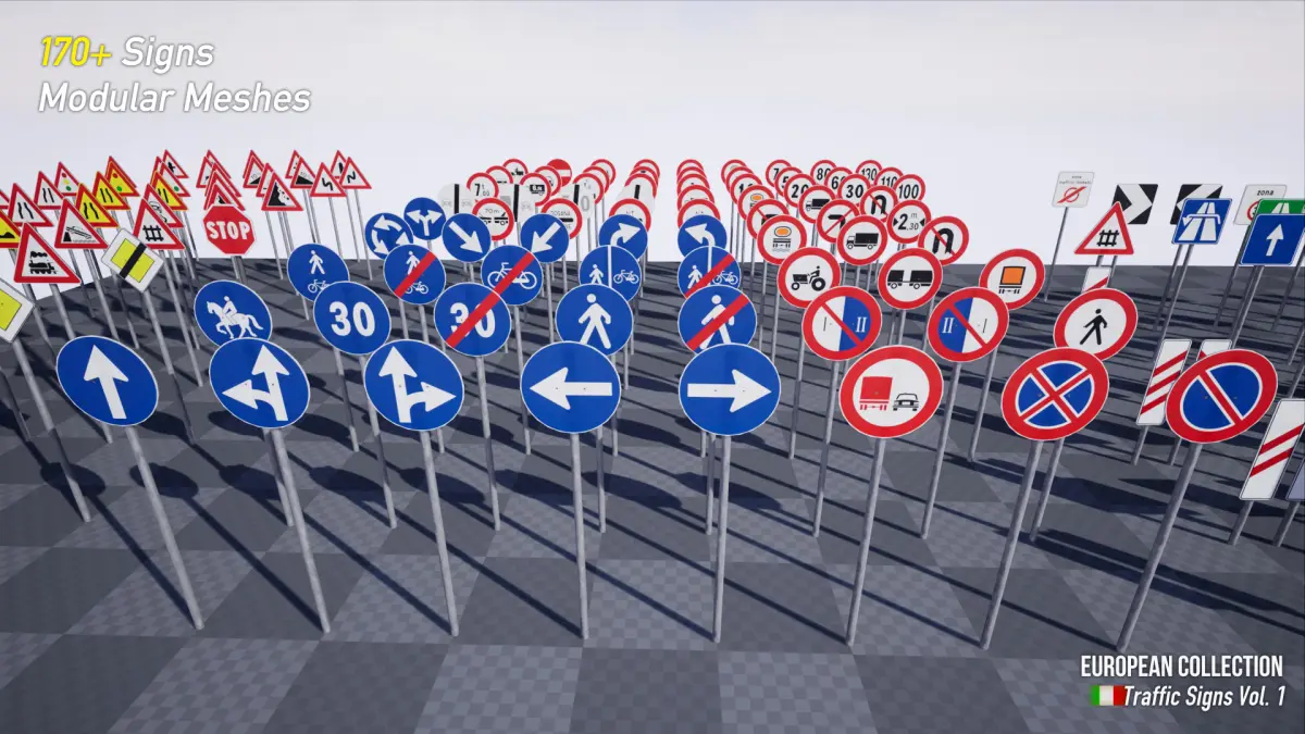 Enjoy this realistic Italian road sign pack with over 170 signs. This pack is designed to provide realistic and good-looking road signs for your game. The road signs have a little bit of dust / dirt on them, which makes them even more realistic.