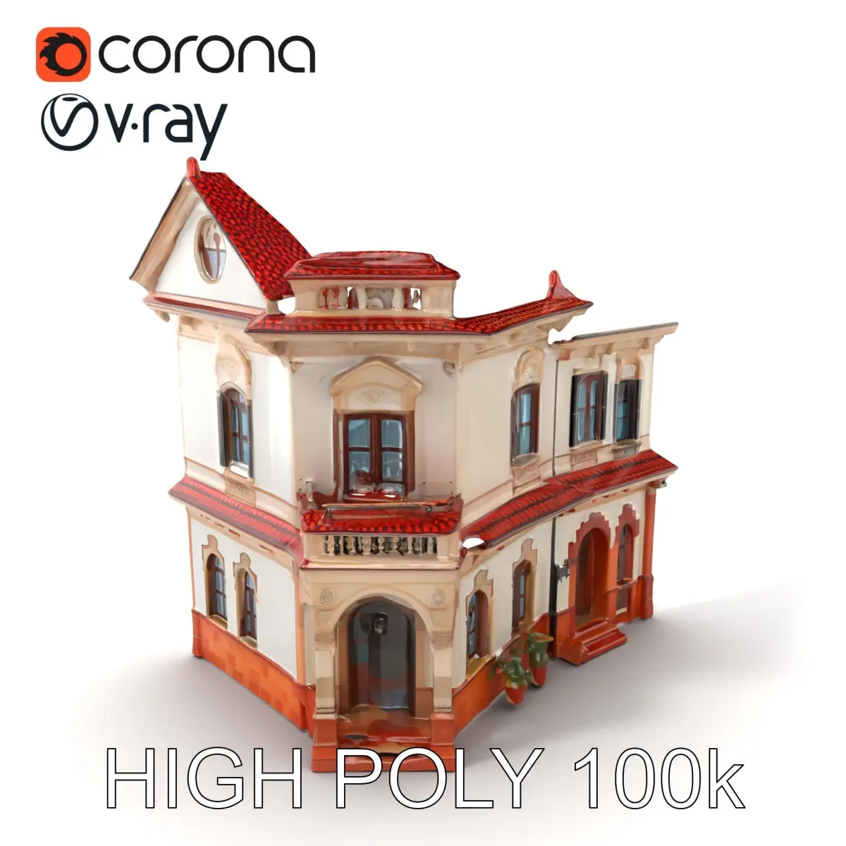 This Italian villa model, featuring stucco walls, ornate cornices, and traditional red tile roofing, is perfect for architectural visualizations, historical recreations, and elegant game environments, capturing timeless beauty and craftsmanship.