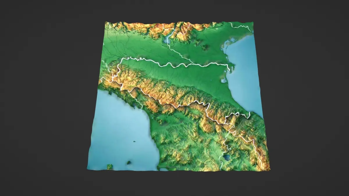 Italy Map Topography Low-poly 3D model