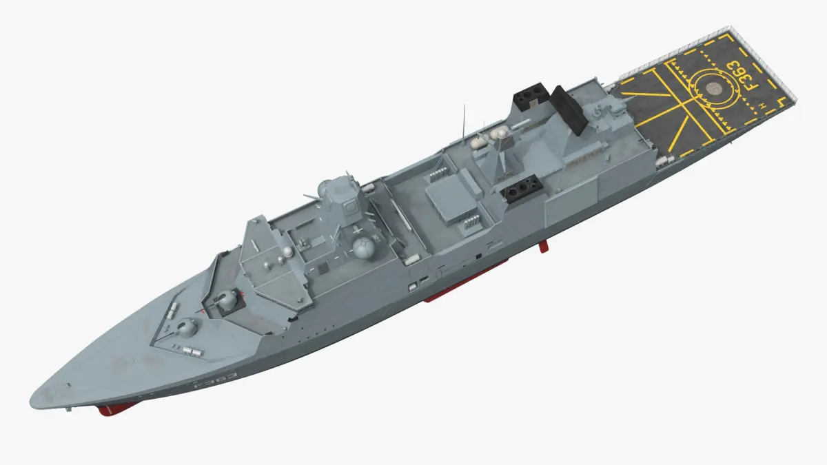 This model represents a highly advanced frigate known for its stealth capabilities, robust armaments, and sophisticated radar systems. With a sleek, stealthy design, the Iver Huitfeldt Class Frigate is equipped with cutting-edge technology, including anti-aircraft and anti-submarine weaponry. Its spacious deck accommodates helicopters, enhancing its operational range and adaptability. The frigate is built to endure and excel in various naval missions, from patrolling and surveillance to combat engagements.