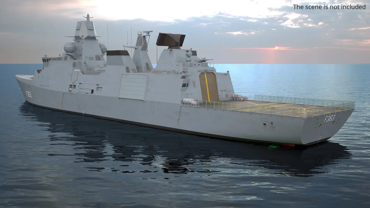 Iver Huitfeldt Class Frigate Stealth Hull Used Simplified is a 3d model of a modern naval warship designed for versatile maritime operations.