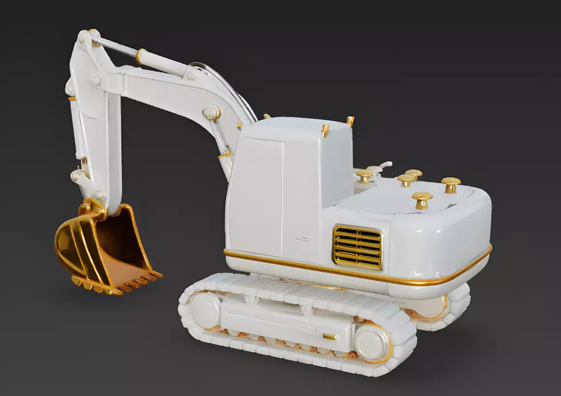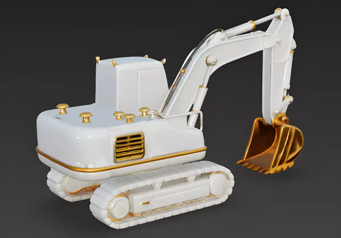 Solid Gold Bucket & HydraulicsTo emphasize its elite status, the model features a massive, polished gold digging bucket and matching gold hydraulic pistons. These metallic highlights provide a breathtaking contrast to the white body and signal that this machine is built for the most exclusive construction projects.