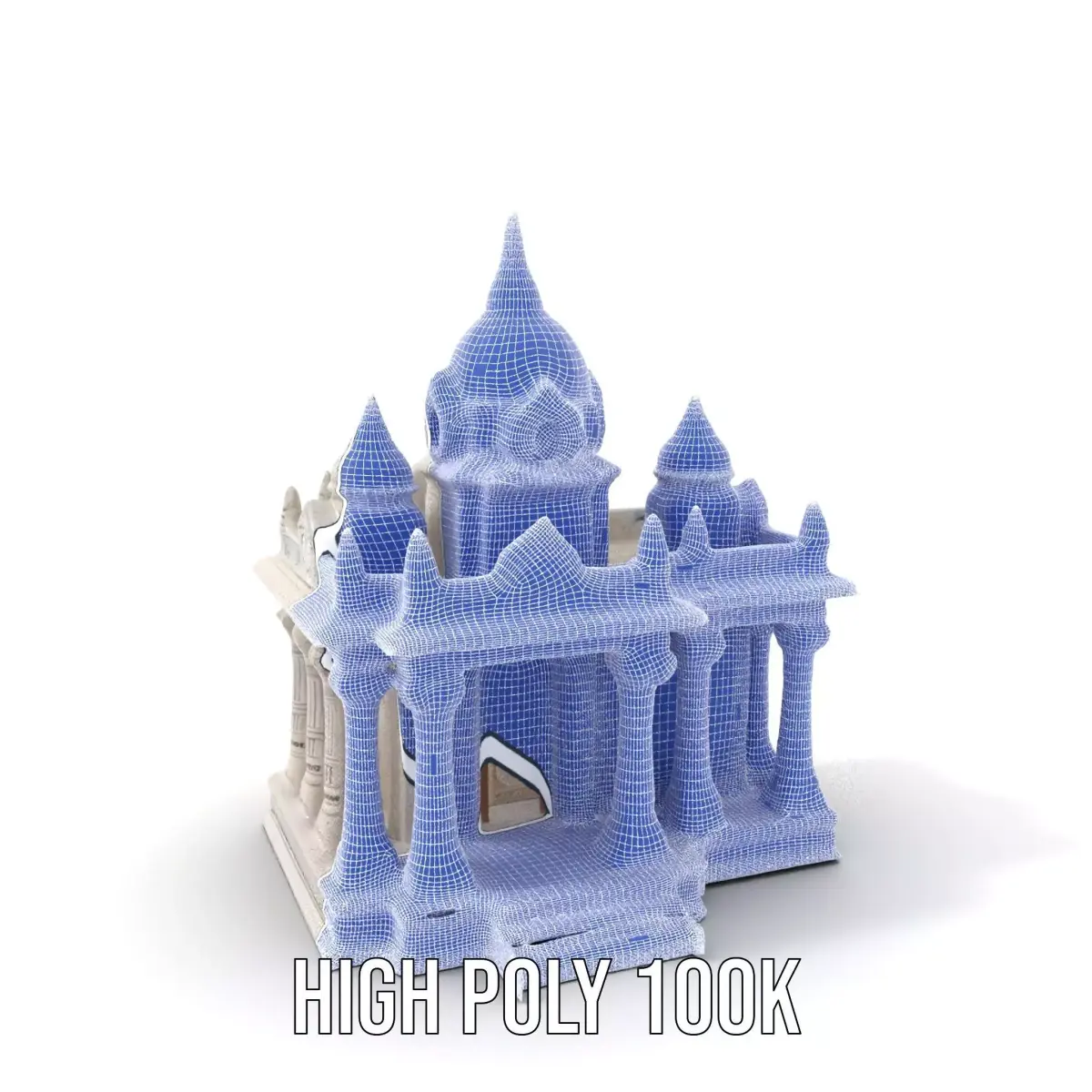 This detailed 3D model of an ivory-colored temple showcases intricate architectural elements, making it perfect for historical reconstructions, cultural simulations, or as an elegant background in animations. Each model has 3 levels of detail: low-poly (1000 triangles for mobile), middle-poly (10,000 triangles for environment), and high-poly (100,000 triangles), which allows for the use of this model in production rendering (such as 3ds max, Maya, Cinema4D, Blender, Vray/Corona/Cycles and all other), game engines (Unity and Unreal compatible), and interactive presentations, providing a choice of detail based on the LOD System principle. The model is ideal for educational purposes or as a centerpiece in virtual reality tourism apps. The model's textures are PBR, Diffuse, NormalMap, and reflection/roughness/metallic, which are suitable for any modern rendering engine. All models accurately unwrapped and have no overlapping UV. All textures are 4096*4096 in size. Please like and leave a comment for the model if you enjoyed it.