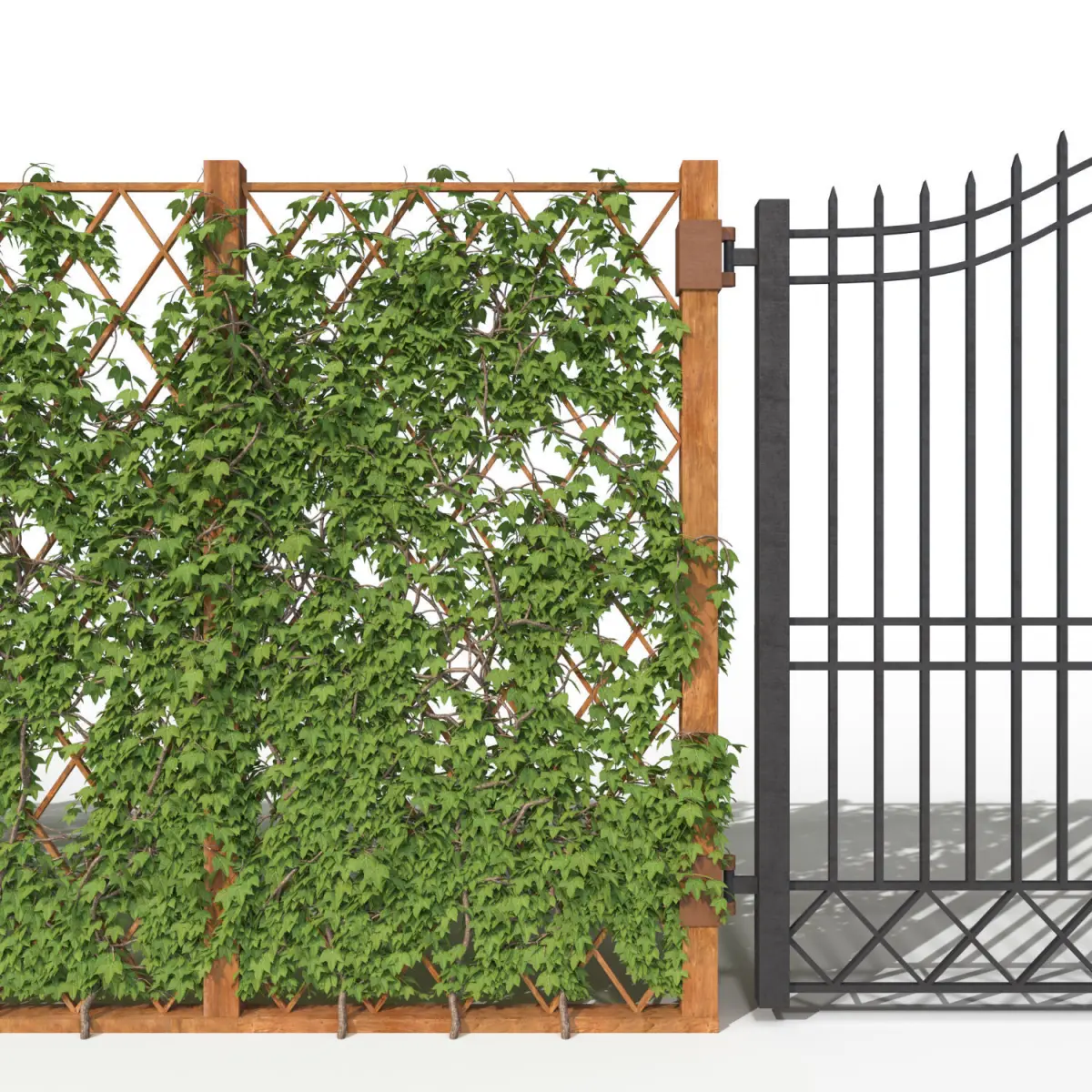 The model consists of 10 unique ivy fence sections and gate.All sections fit perfectly together. You can create a fence of any length.