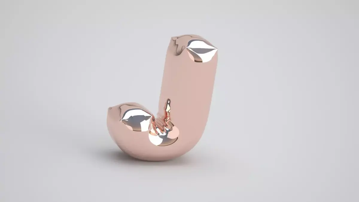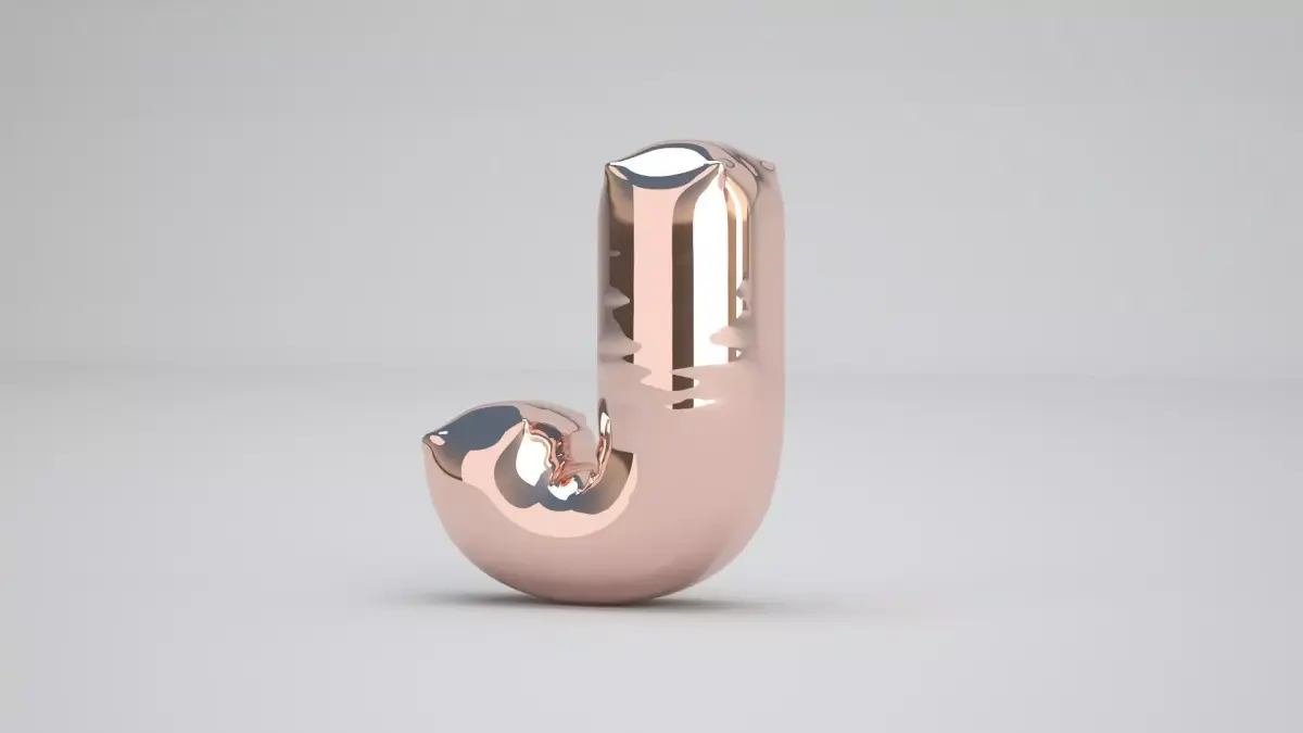 Realistic 3D Model OF Balloon J Alphabet Copper