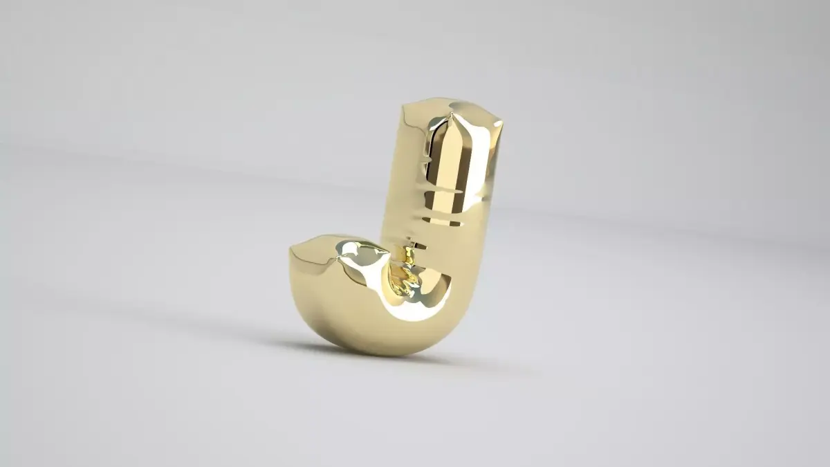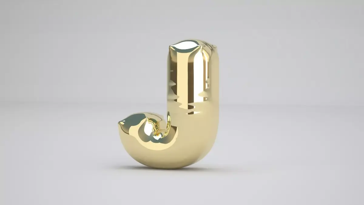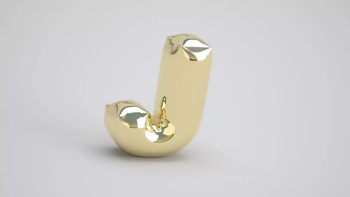 Realistic 3D Model OF Balloon J Alphabet Gold