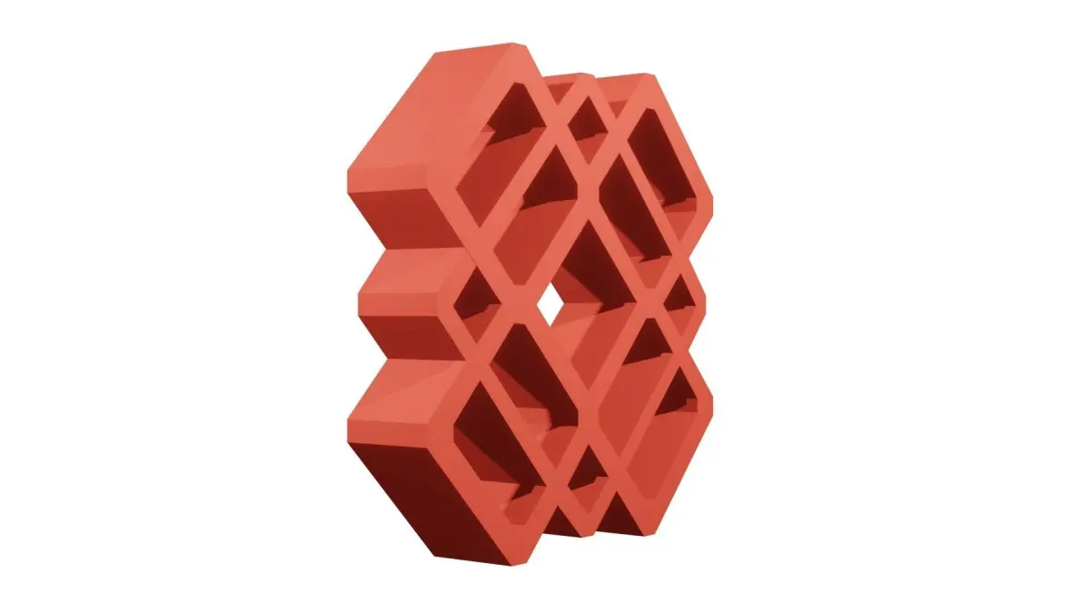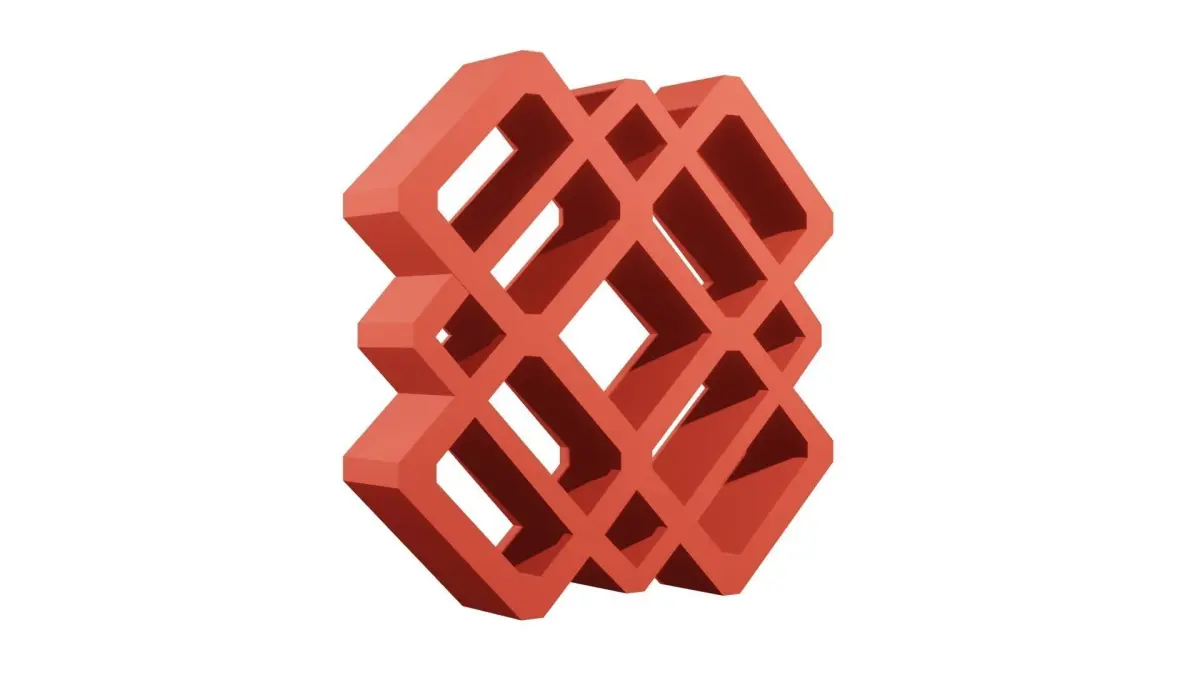 This is a digital 3D model of a Jaali block design titled Diamonds within Diamond, created using Blender; a 3D modeling, rendering and animation software tool. A Jaali block is an architecdtural construction decoration designed block for exterior or interior construcion. The Jaali blocks are created with various designs which usually have openings that allow a view through the block wall.