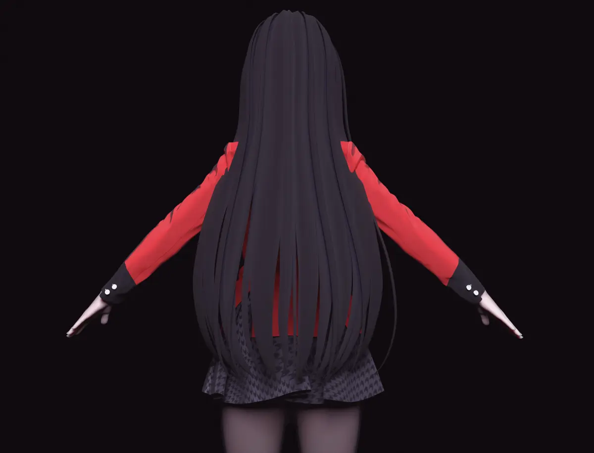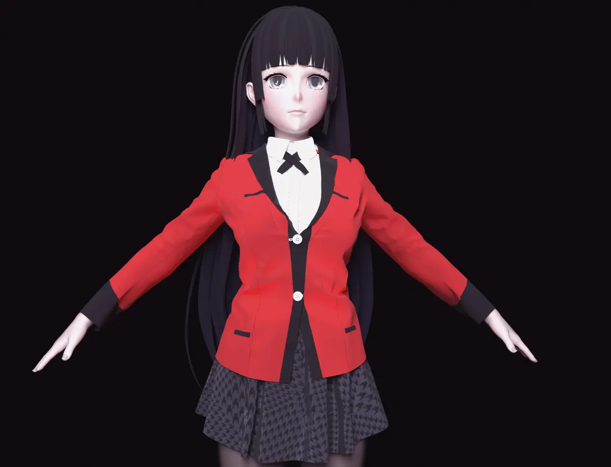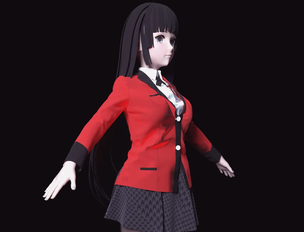 Yumeko Jabami (蛇喰 夢子 Jabami Yumeko) is the main protagonist of Kakegurui - Compulsive Gambler. The clothing adorning this masterpiece was meticulously designed using Marvelous Designer, a tool renowned for its ability to create true-to-life fabric simulations. The garments drape elegantly over the model's body, reflecting the interplay of light and shadow on different fabrics, thus elevating the overall realism of the character.