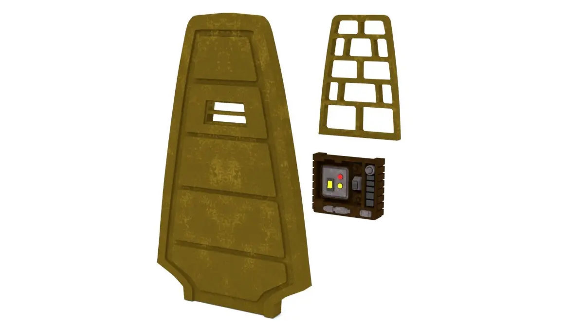 This door can be seen in Return of the Jedi, when C3PO walks trough the prison area in Jabba's Palace. It contains the door, the control box and the window for the cell
