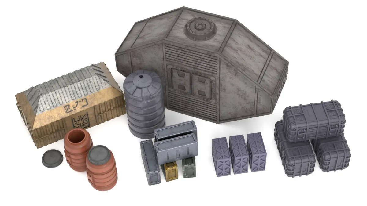 This Star Wars barrels and crates seen in the Main Hangar of Jabba's Palace from The Book Of Boba Fett.1:18 scale (3.75 inch Kenner/Hasbro figures (TVC))