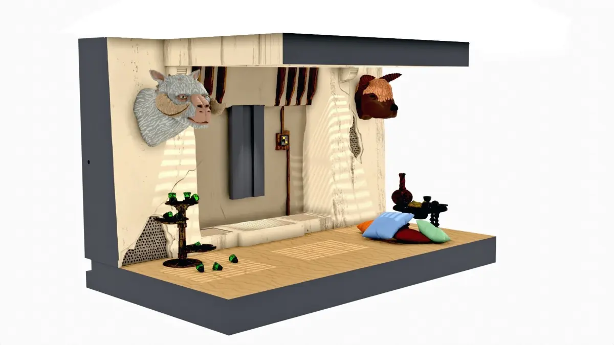 This is the Star Wars Jabba's Trophy Room from Return of the Jedi. This is a single set (not part of the Jabba's Palace sets). 1:6 scale (12 inch figures)