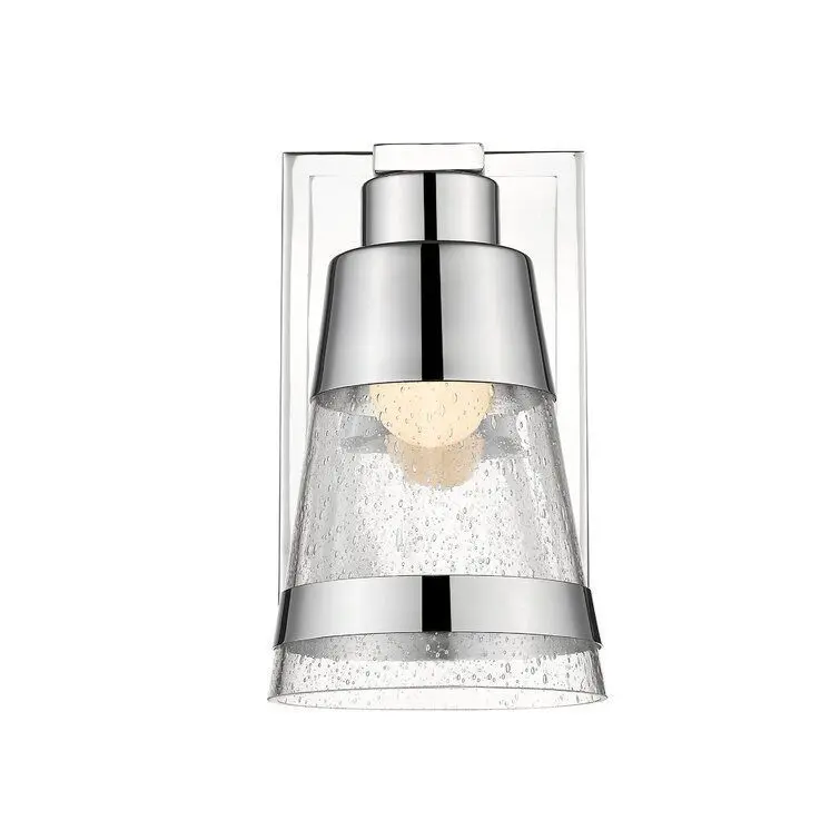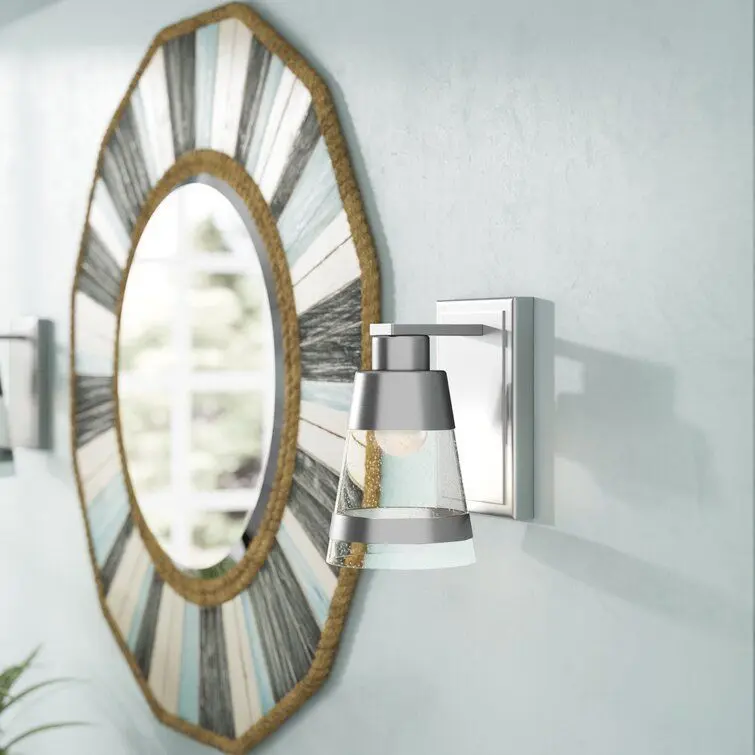 - Heady seedy glass brings an authenticity to the maritime theme of this one light wall sconce. Beautifully finished in brushed nickel, its steel base and shade trim add a sophisticated sense of style and charm.