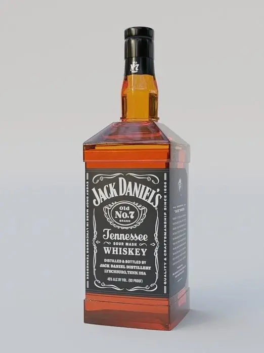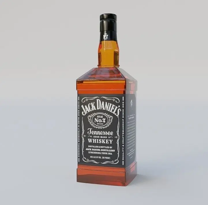 Bottle of Jack Daniels with a very light and well made topology, textures of the labels included in zip folder and exported files, available in formats: