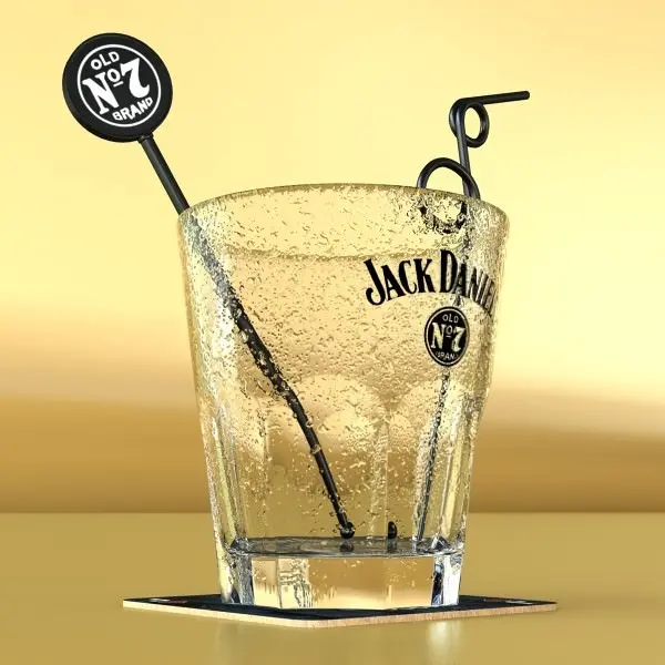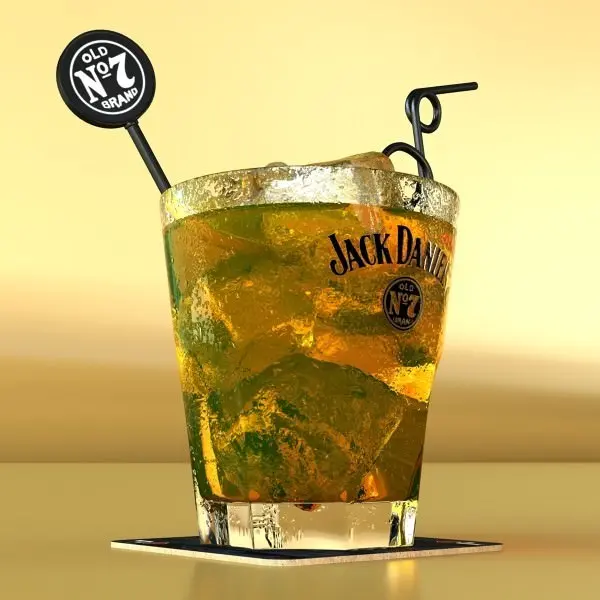 Photorealistic and High Detailed Whisky Glass Ice Lemon Straw Stick Coaster.
