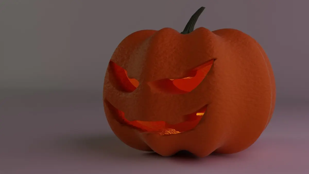 This is a classic creepy jack-o-lantern with a little candle inside. The size of the pumpkin is about 33 cm x 36 cm x 17 cm. The size of the candle is 5 cm x 5 cm x 4 cm.