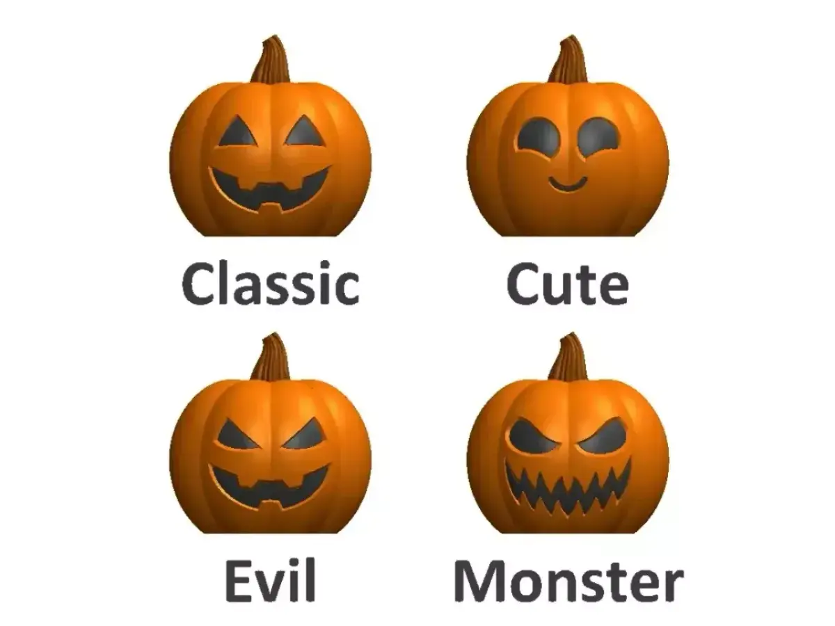 Spice up your Halloween and autumn decor with this highly versatile 3D printable Jack-o-Lantern pumpkin set! The download includes four pumpkin models—Classic, Cute, Evil, and Monster—each with a unique carved face and matching realistic stem. Designed for fast, support-free FDM/FFF printing, each pumpkin can be painted or printed in self-color filament for instant effect. These solid pumpkins are perfect for outdoor and indoor decoration, photo shoots, kids' crafts, or party displays. Scale to any size for mantelpiece miniatures or giant porch props, and paint the facial cavities with black for maximum expression. Each pumpkin prints in two main parts (body and stem) for easy post-processing.