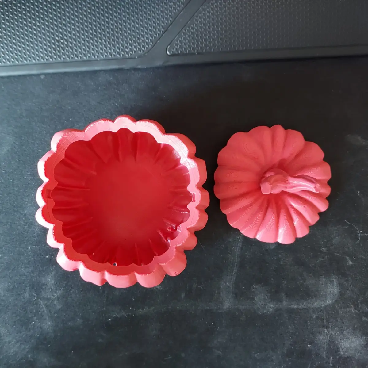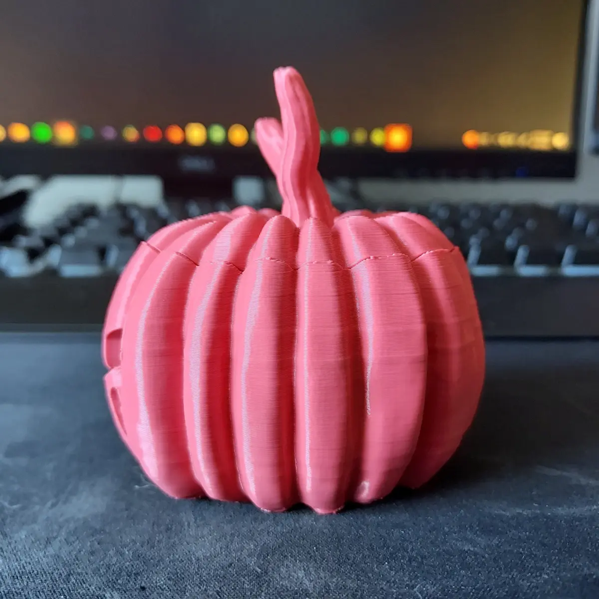 We got an excellent Halloween-themed design today. This is the first edition of more pumpkin designs to come! This little guy comes in 2 parts a top, and bottom. Little divots were cut so that the lid will snap into place. This print can double as a tea light holder to decorate your interior or exterior, or just scale it up and toss a bunch of candy there for guests, or yourself! The print is scaled at roughly 3in/76mm in diameter, perfect for a small tea LED light.