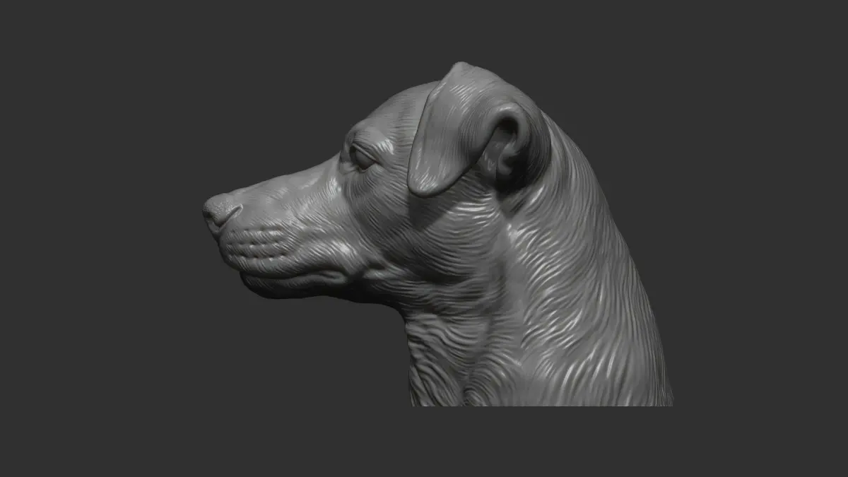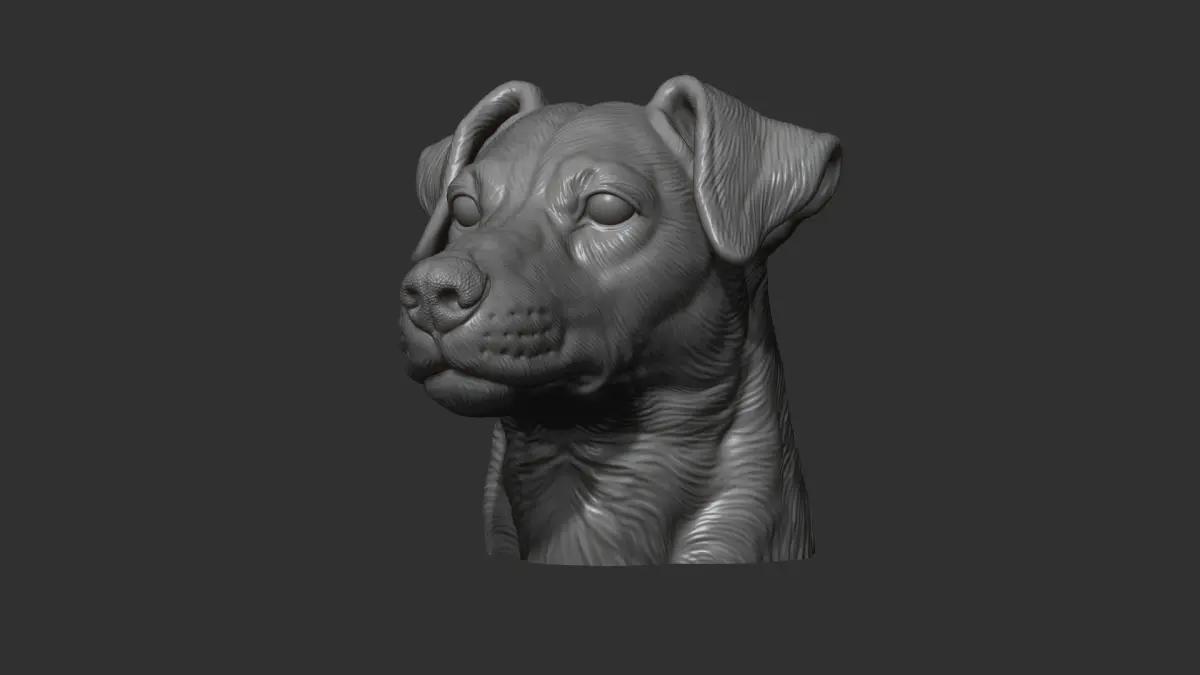 500K STL, OBJ triangulated mesh, Jack Russell Terrier bust is cut off from the bottom