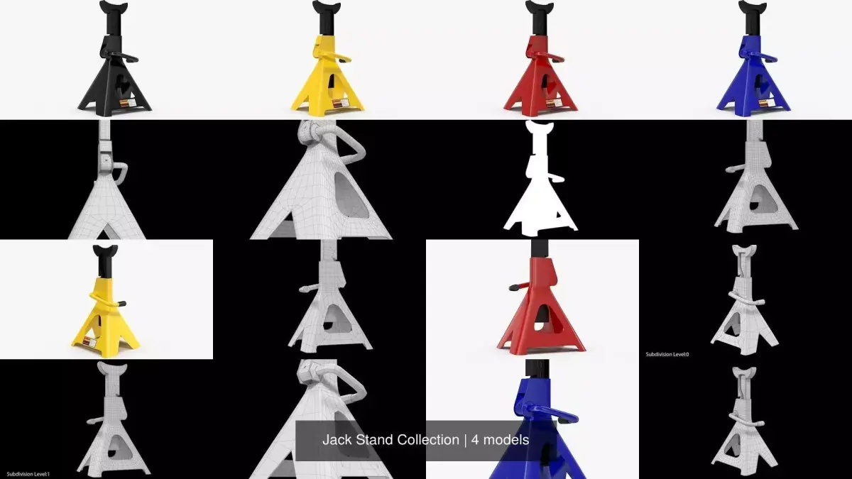 This Jack Stand Collection is a high quality, photo real collection that will enhance detail and realism to any of your rendering projects. The models has a fully textured, detailed design that allows for close-up renders, and was originally modeled in 3ds Max 2013 and rendered with V-Ray. Signature image scene doesn''t included. All models in this collection lays in separate scenes