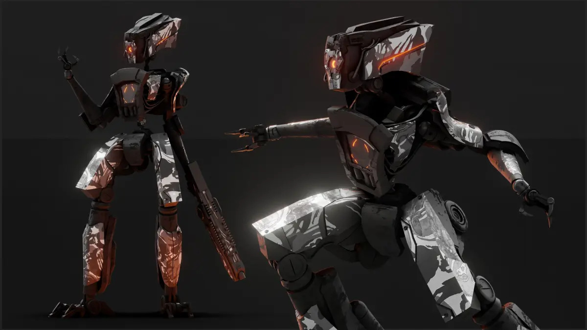 This Military Robot is Hardsurfaced modeled and rigged within Blender 2.8. Comes with the Jackal (robot) aswell as a rifle and simple rig. The Robot comes with two PBR textures for the base black material and the armor camo. This Character was created inteded for 3D animation and VFX.