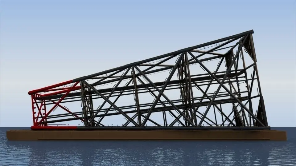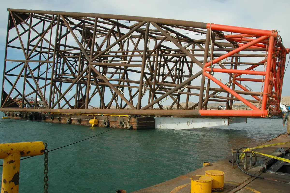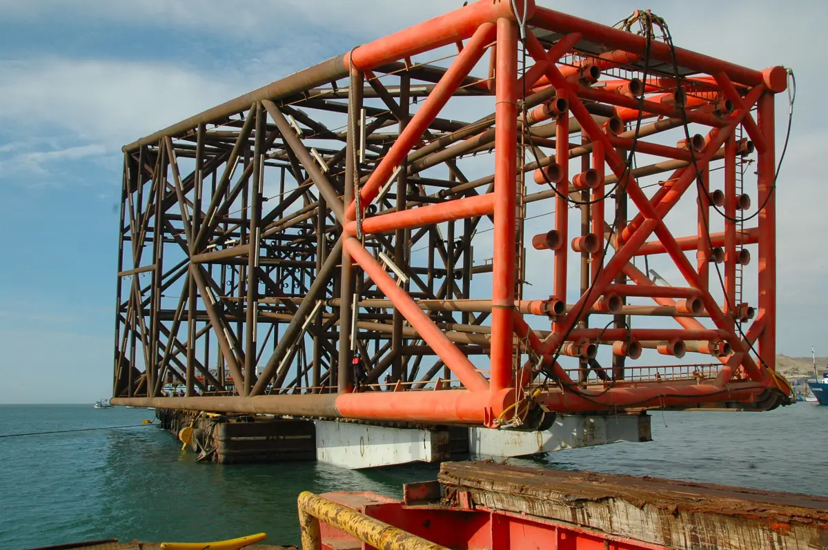jacket loadout of the coast of Peru, launch jacket instead of side liftingthe jacket, adding some real picture of the load on site job