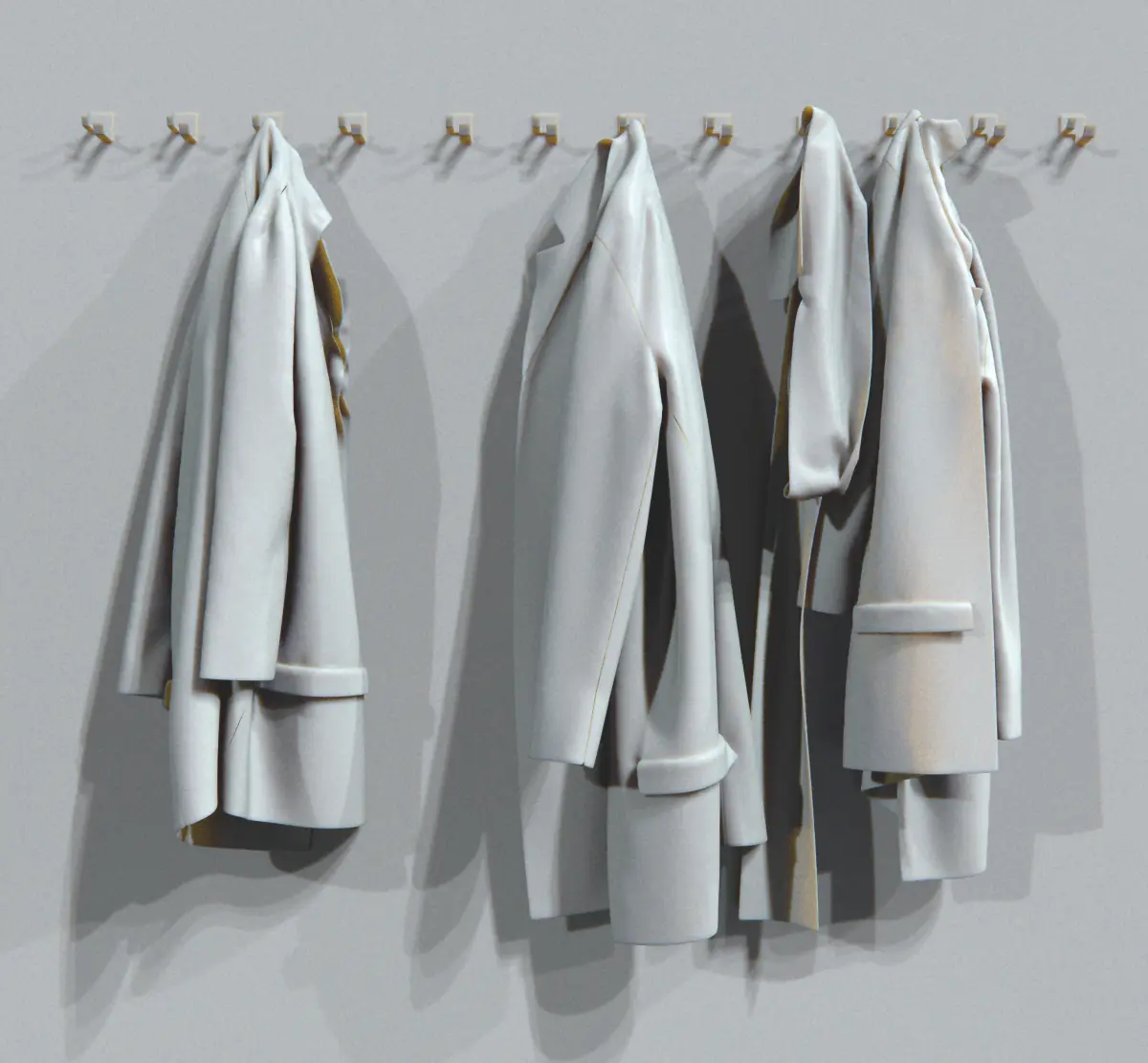 File contains three models of jackets and shawel. Great like suppliment for your interier render.The rar constains OBJ file in low and highpoly version and FBX scene with all models.