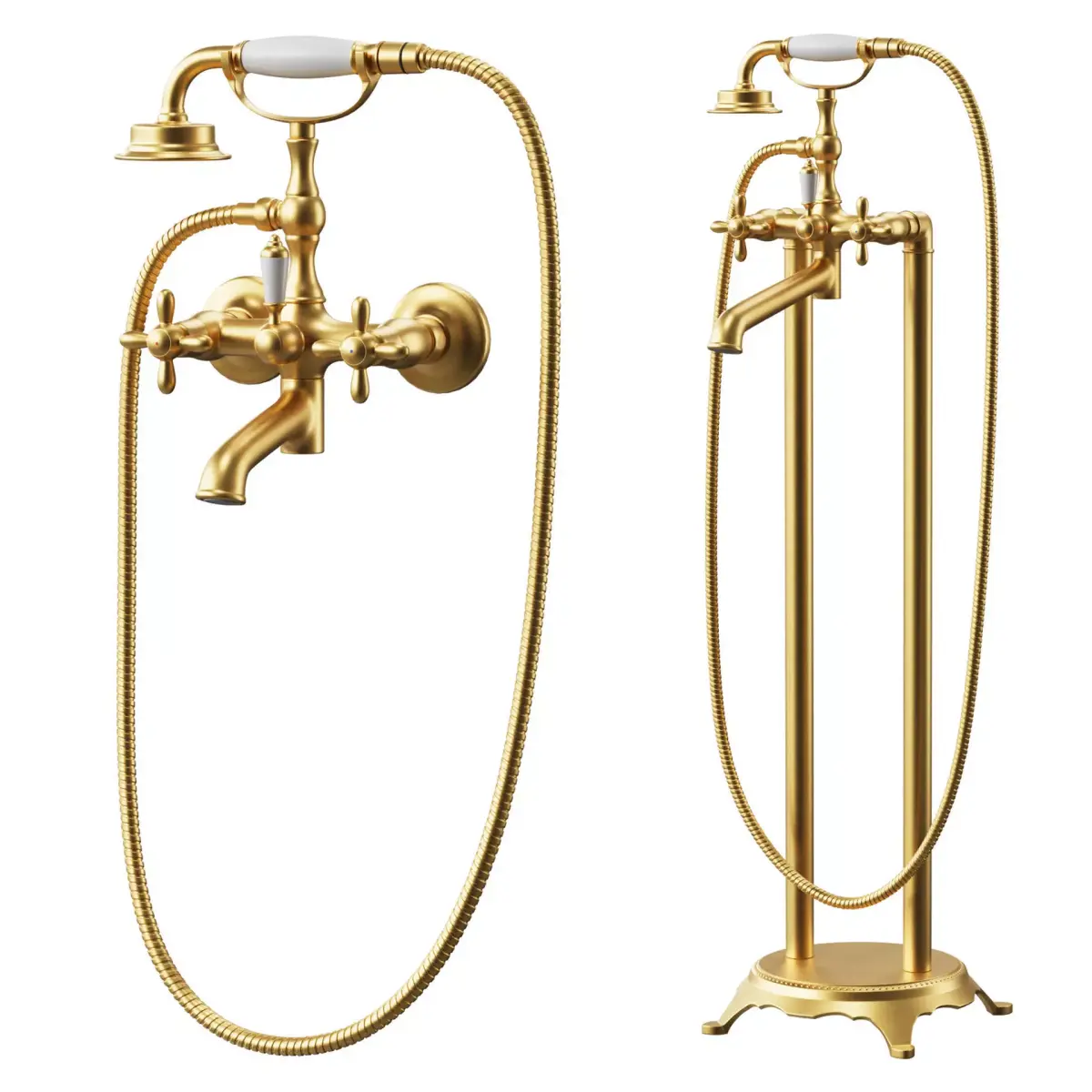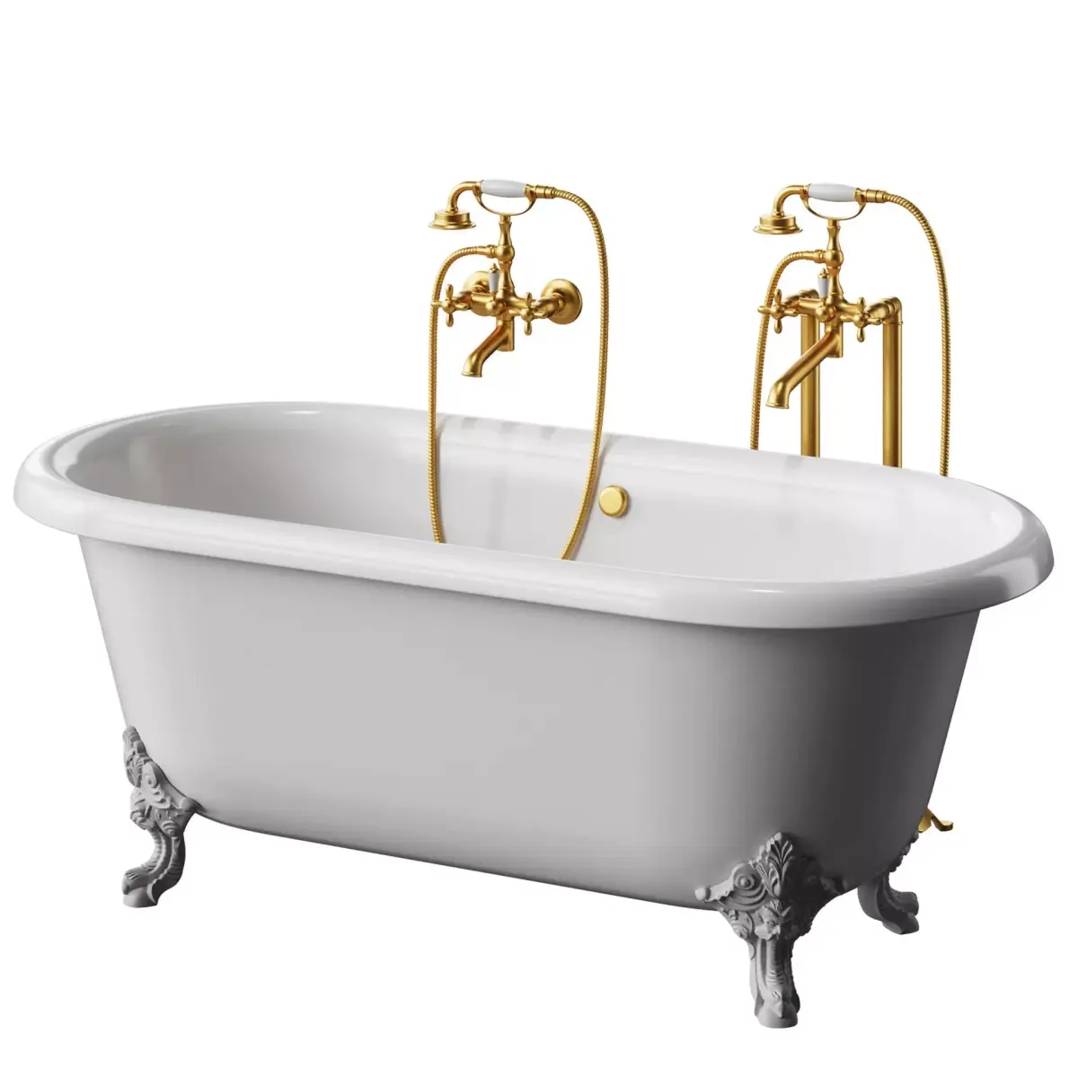 Jacob Delafon Cleo bathtub, Wonzon & Woghand faucets in 2 colors: chrome and gold.CoronaPhysicalMTL materials, renderings made in Corona3ds max 2018, OBJ, VRay+Corona