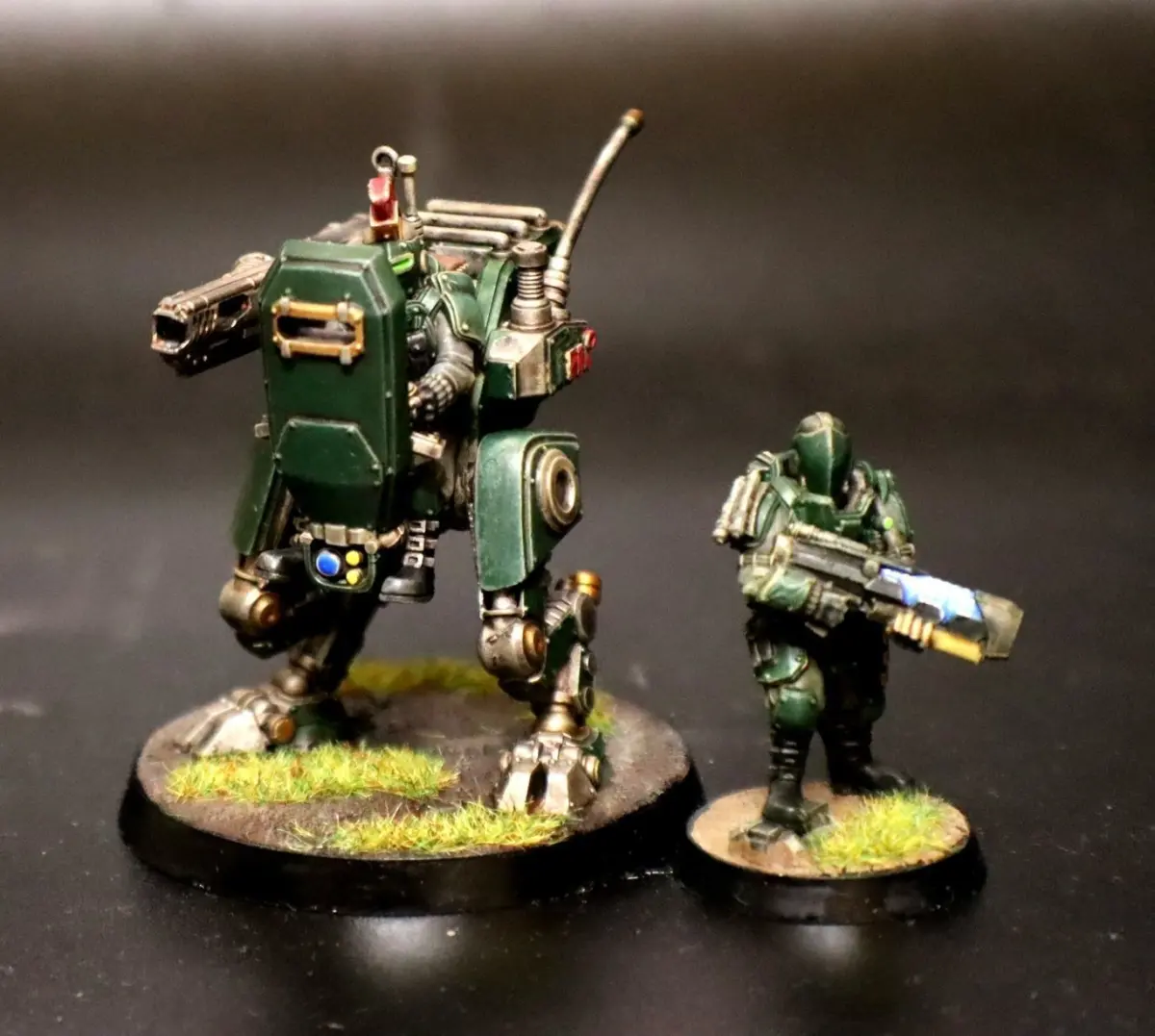 Faction Lore:The Jade Coalition are a part of the Terran Technocratic Union, A group comprised of three factions on pre-unity earth.The Coalition force is gathered from several City-States that cover the North east of the spine mountains.Primarily a mobile force they go to war with rail and coil weapons as well as the most advanced surveillance and targeting systems on Terra.The Coalition is armed and armored by mechs, hover tanks, and a variety of combat and logistic drones.During the wars of unity the Coalition acted as a mercenary force, working both for the warlord of the thunder legions and rogue technocratic enclaves. As unity became assured the coalition threw in wholly with the nascent imperium, and as the empire expanded beyond earth the Coalition forces made up a portion of the expedition fleets.As civil war breaks out across the galaxy they have reverted to their mercenary tendencies, biding their time, and waiting to see which side will gain the upper hand.