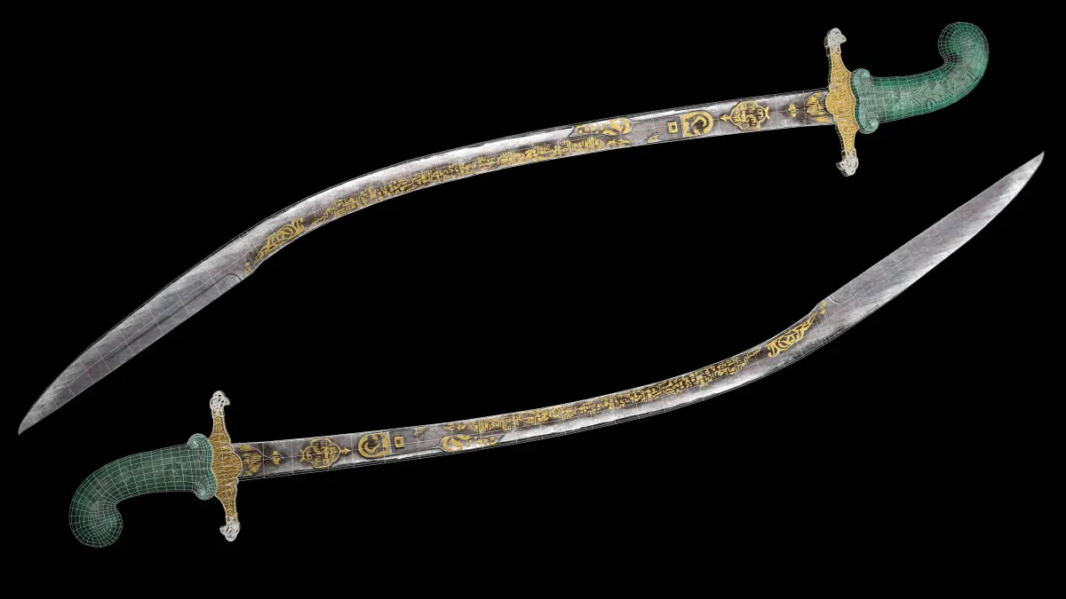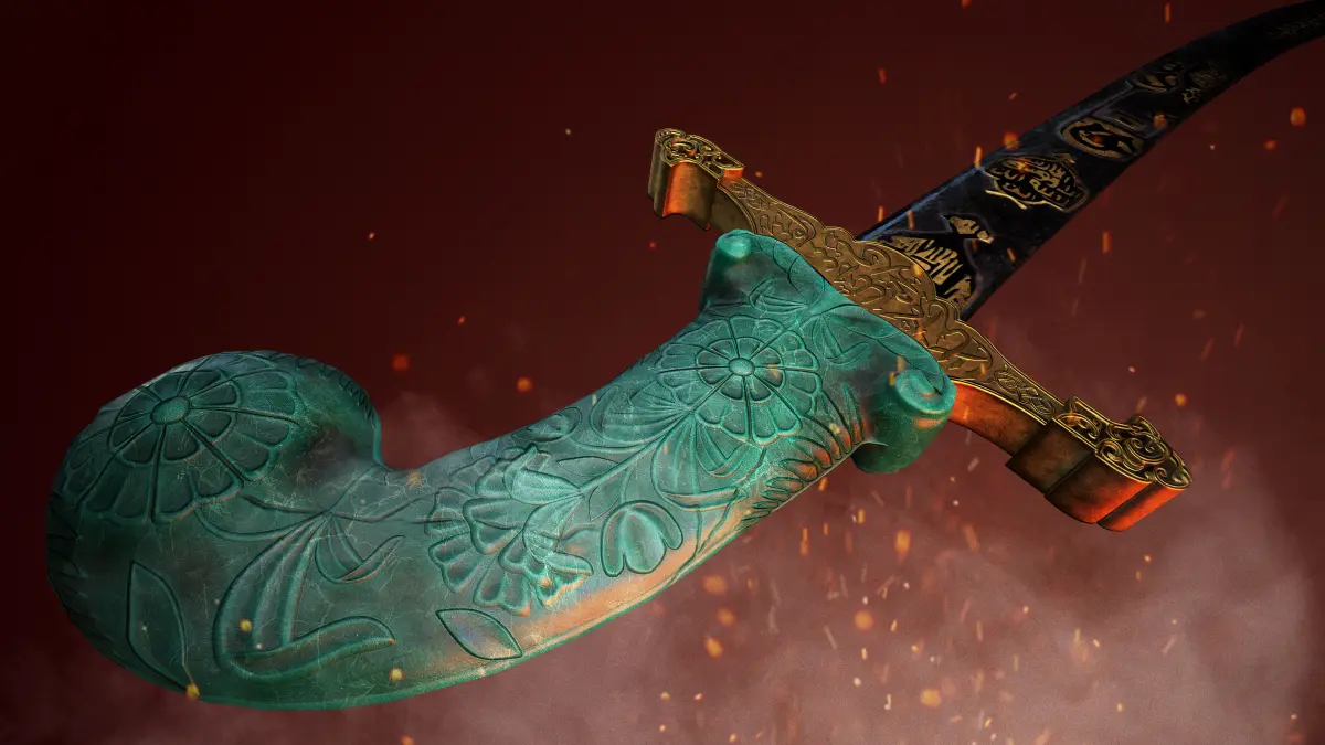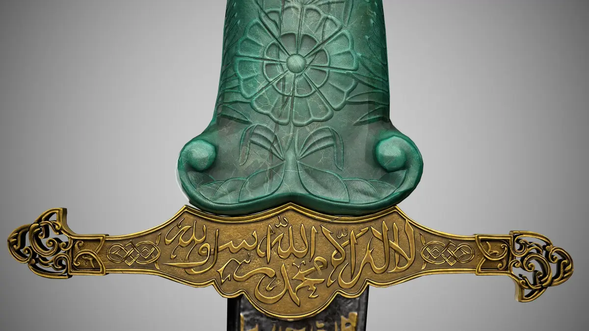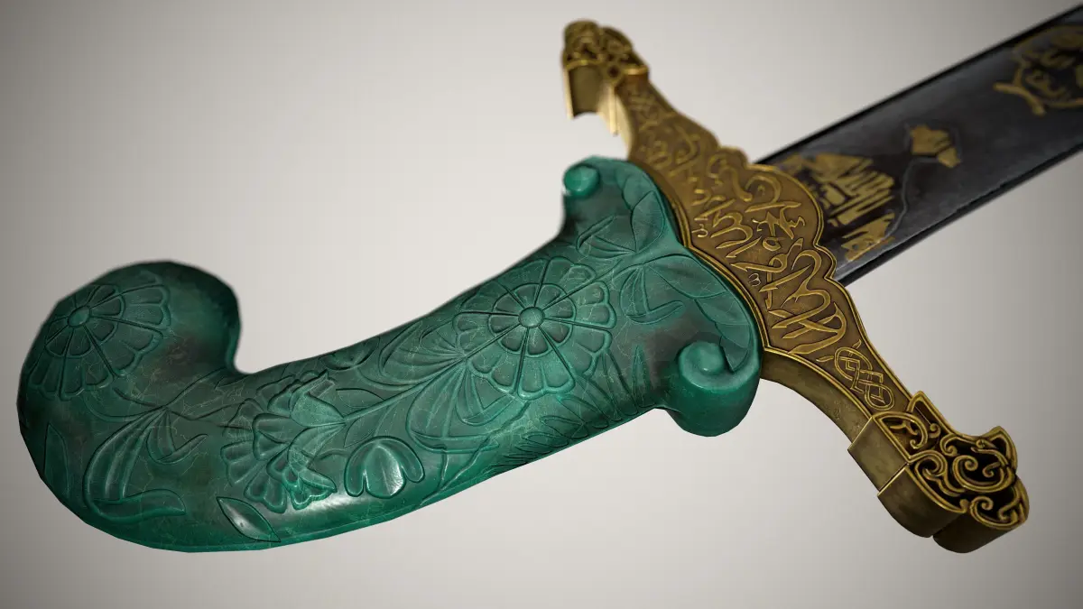 A kilij islamic saber with a jade hilt, inspired on a piece from the Metropolitan Museum of Art's Arms and Armor collection.