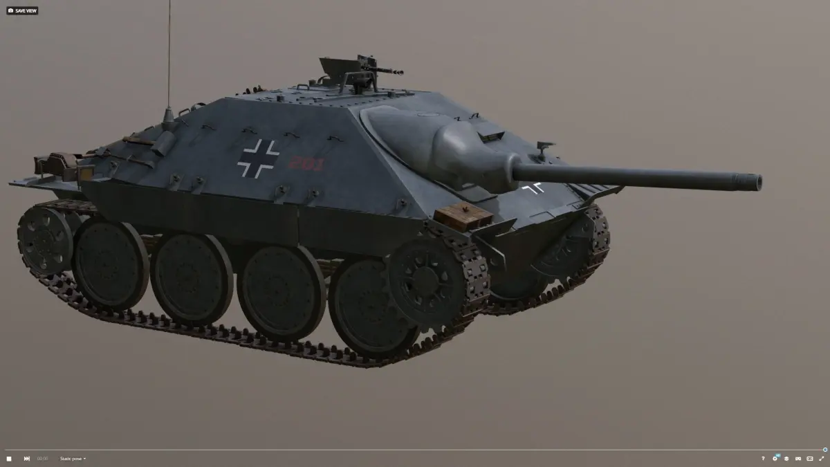 with love hand made textures in painter. Iam Historican,Game ready model for unreal, unity engine. For scenes, videos, games.4k PBR textures in substance painter. Albedo, Metalic + rougness, Normal map. gizmos ready. You need somting ? PM me =)ready for 3D printingBlender 2.9 modeledBlender 2.9 modeledSubstance painter original textures 2k res. Realstic scale asset and game ready.Download includes:2k & 4k PBR textures.blend file.fbxJagdpanzer 38 - Hetzer grau camo