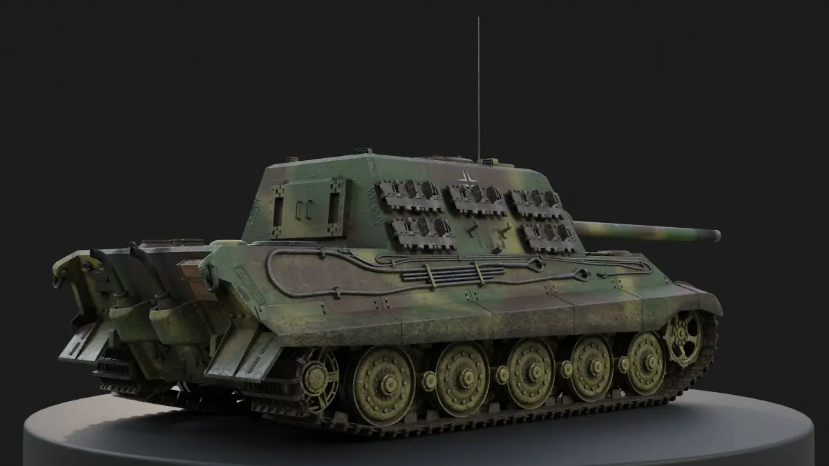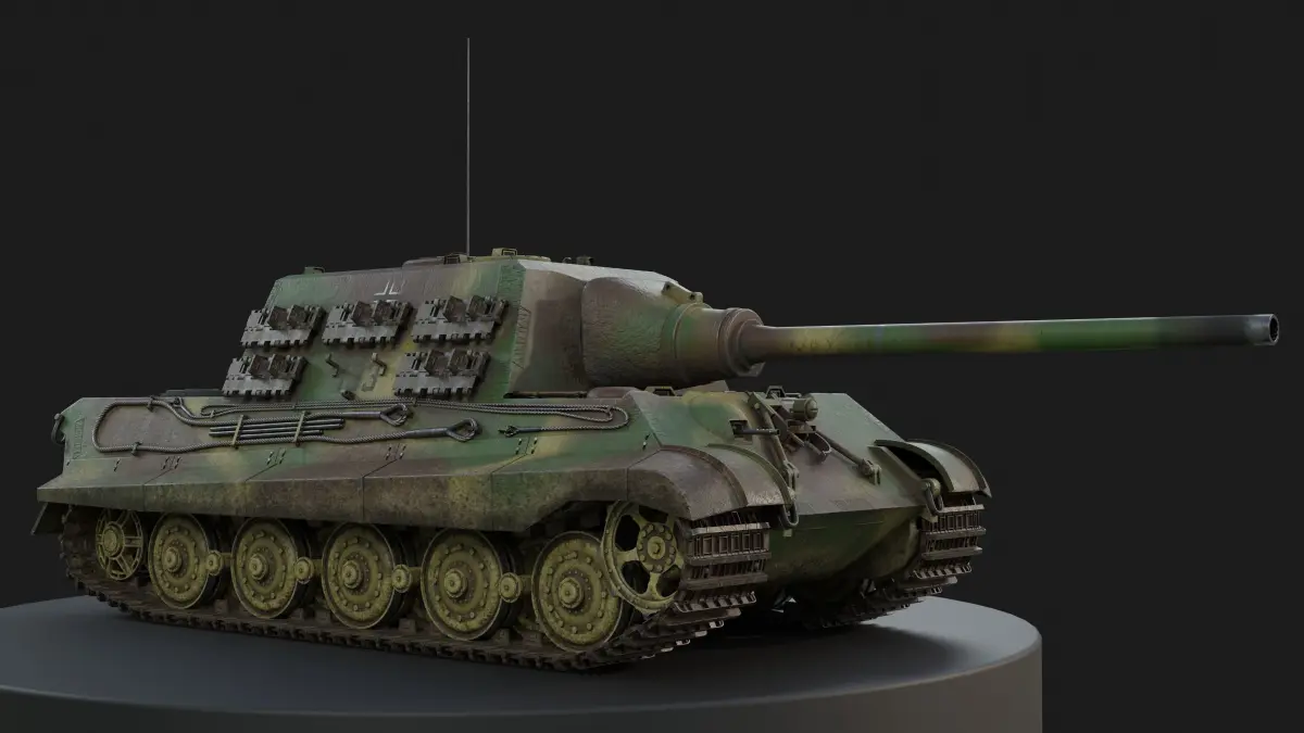 This is a detailed 3D model of the Jagdpanzer VI „Jagdtiger“ („Hunting Tiger“), a tank destroyer, used by Germany in WW2 from 1944 to 1945.