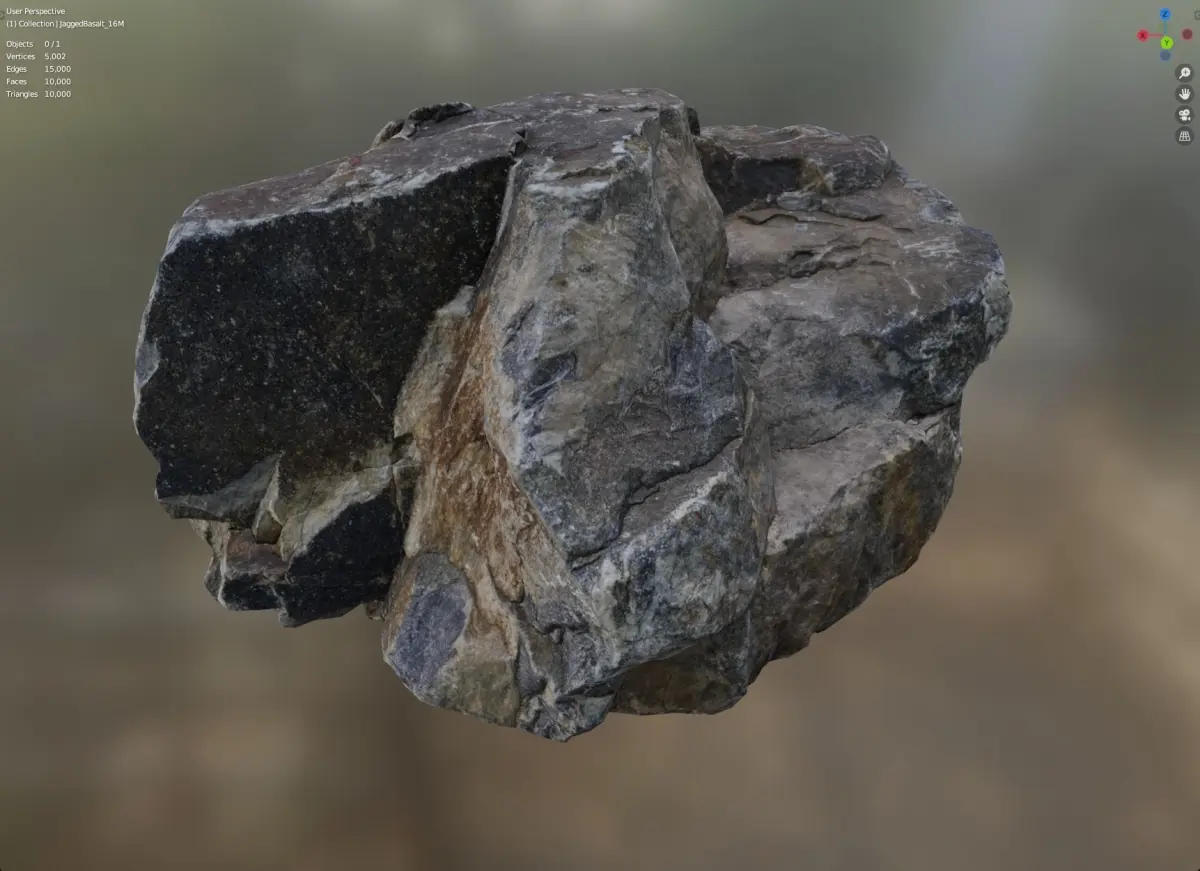 Photorealistic jagged basalt made from Photogrammetry. 8K Texture Files : Color, Normal, and Ambient Occlusion. Model origins are centered by mass. Models are provied as FBX and OBJ for maximum interoperability with 3d programs and game engines. LODs are available with the following face counts: 1K, 5K, 10K, 200k, 2Mil, 16Mil