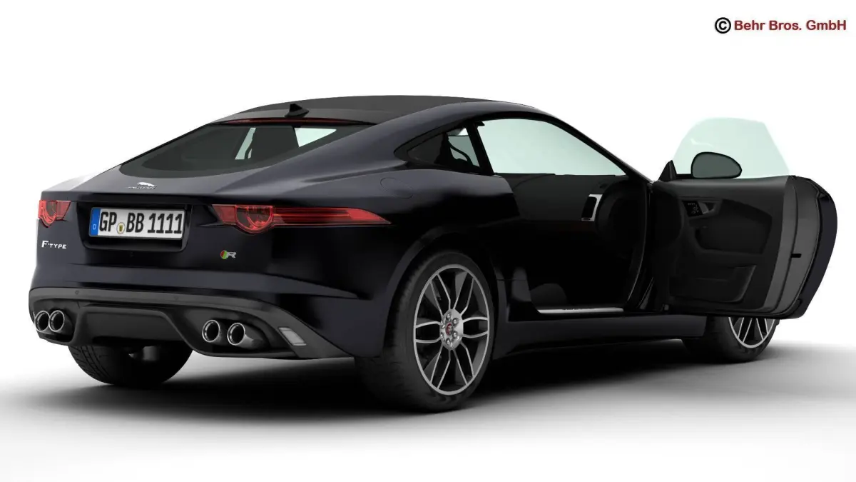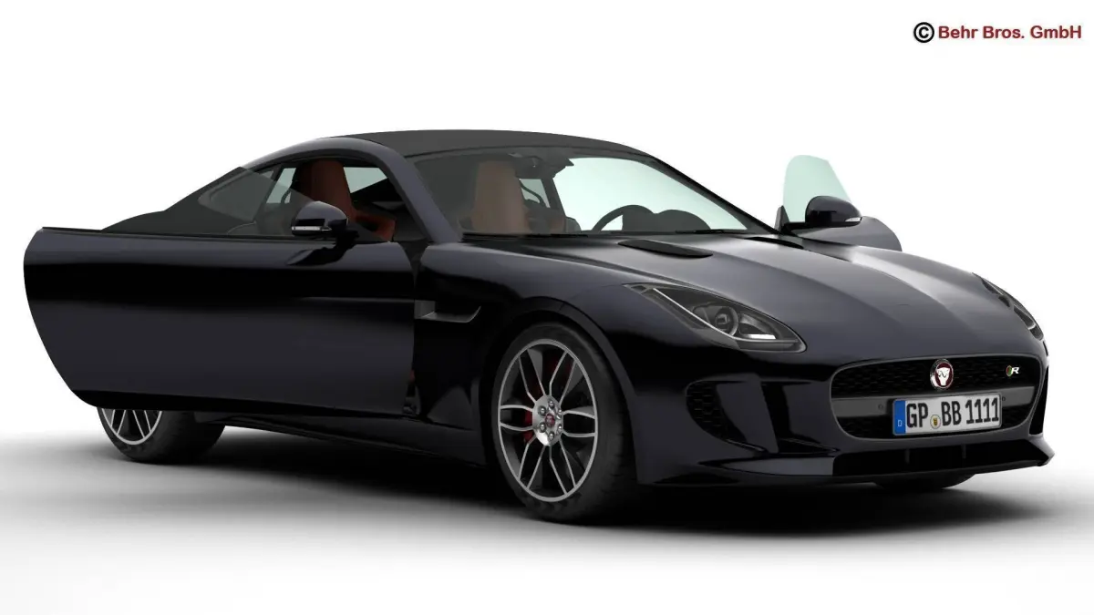 Accurate very high definition Jaguar F Type R Coupe 2015 model with highly detailed interior fully textured. Headlights and taillights are modelled, doors can be opened. The model includes modelled tires.