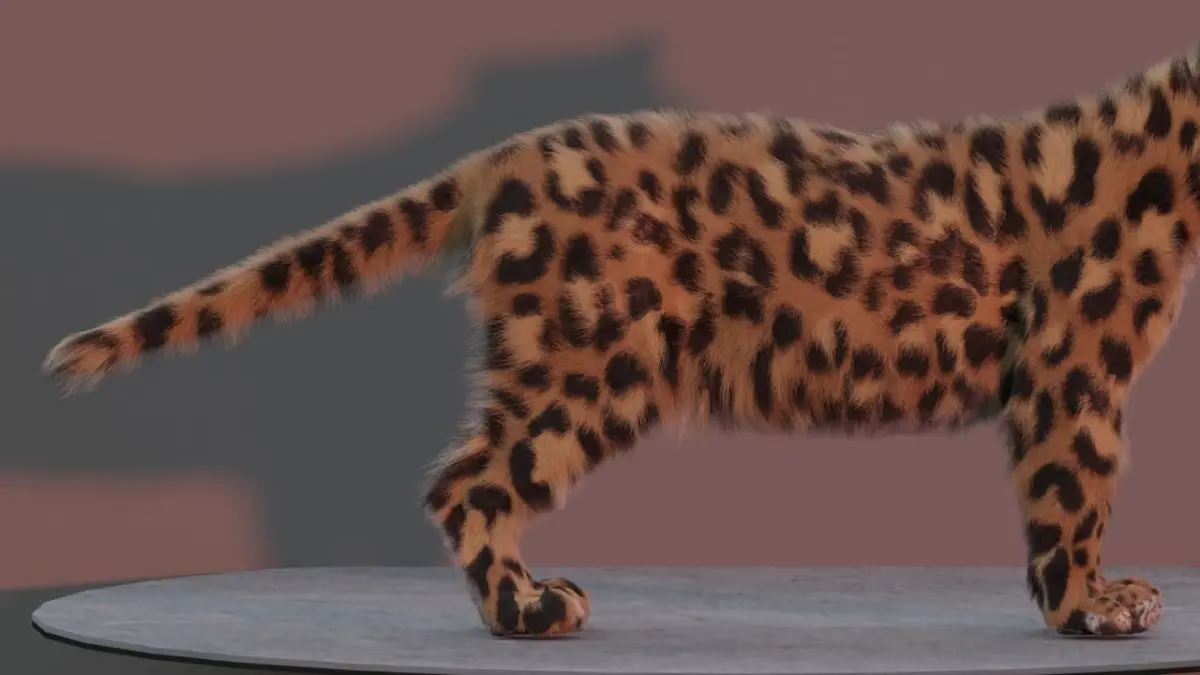 It also has highly-detailed fur (hair), and the fur was created with Blender's particle settings.