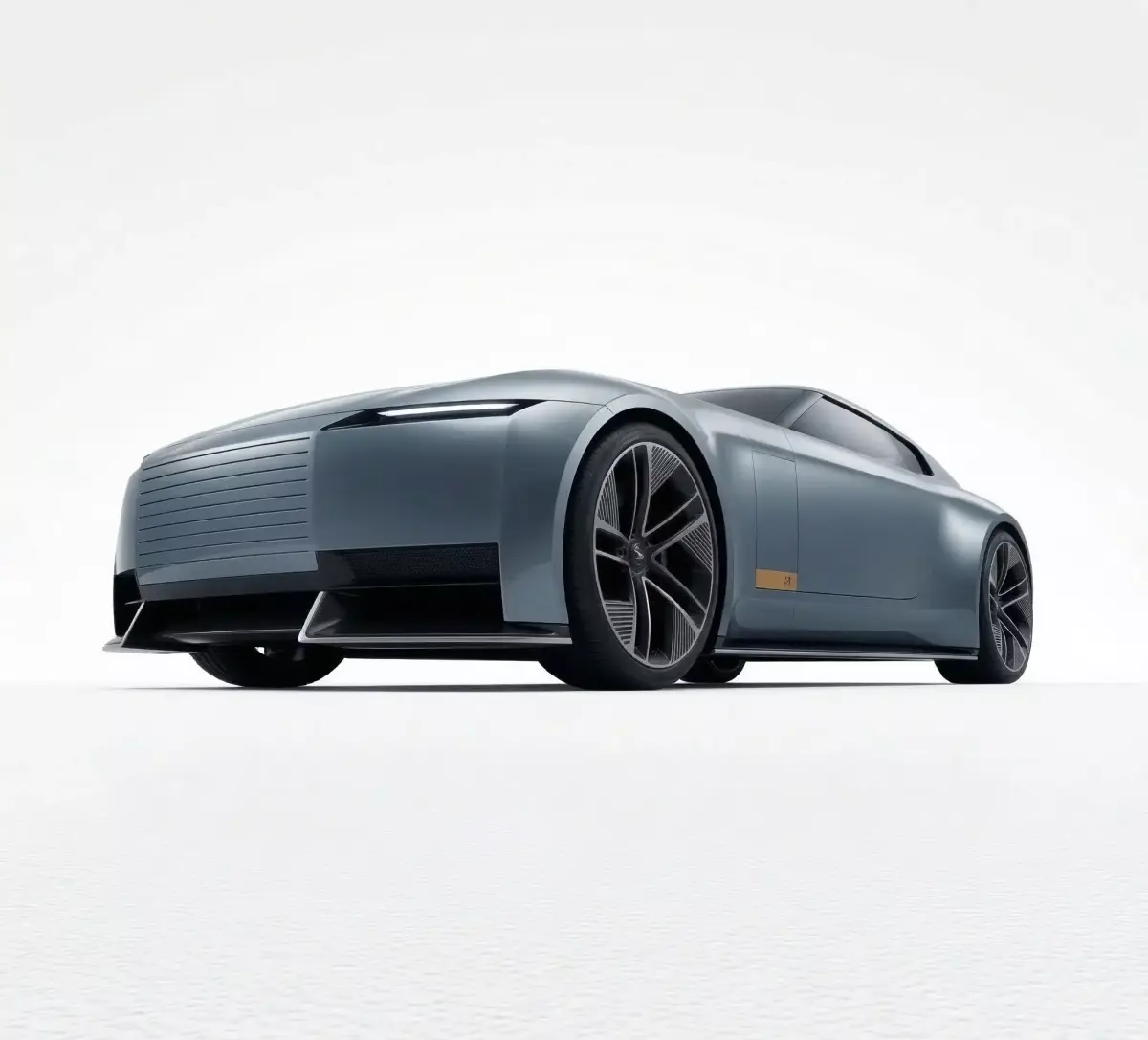 This high-fidelity 3D model presents the Jaguar Type 00, a bold design study that signals a radical new era for the historic British marque. The model showcases the concept's ultra-minimalist, aerodynamic monolith silhouette, finished in an elegant metallic silver-grey that emphasizes its long wheelbase and low-slung proportions. Meticulous attention has been paid to the unique front-end treatment, featuring a flush, horizontally-slatted grille and ultra-slim LED light blades that replace traditional headlamp clusters. Authentic details include the seamless glass canopy, large-diameter aero-efficient wheels with intricate spoke detailing, and the absence of traditional door handles or mirrors, highlighting the vehicle’s focus on pure form and advanced electric architecture. This photorealistic asset is an ideal choice for futuristic automotive visualizations, concept car digital showcases, or as a premier centerpiece in a collection of next-generation luxury EV designs.