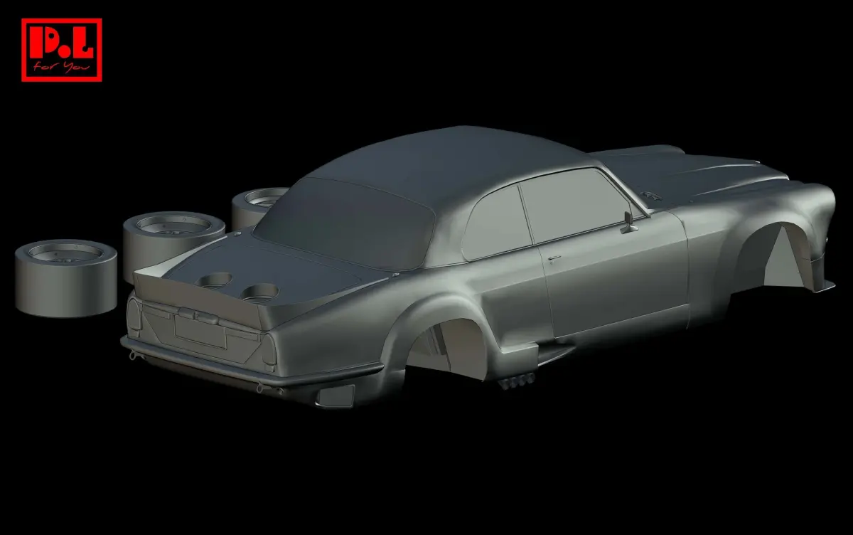 Broadspeed Jaguar XJ12C car model kit for 3D print. Fits to be printed in all the major collectible scales — 1:87, 1:64, 1:43, 1:32, 1:24, 1:18 — but You can customize it to the scale and size You need. The model comes in 1:24 scale by default. Files are ready to printed, You will just need to add supports and place it according to Your printing bed size.