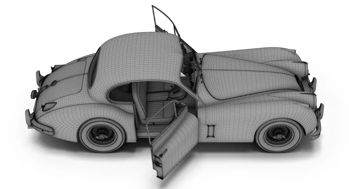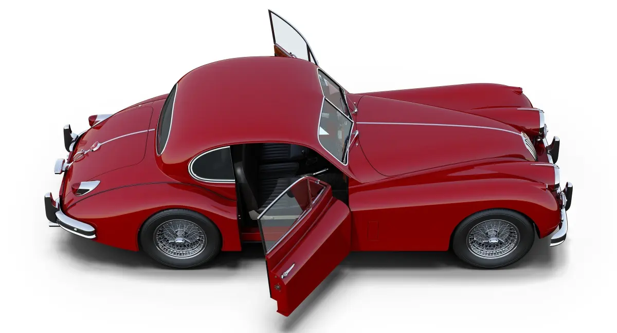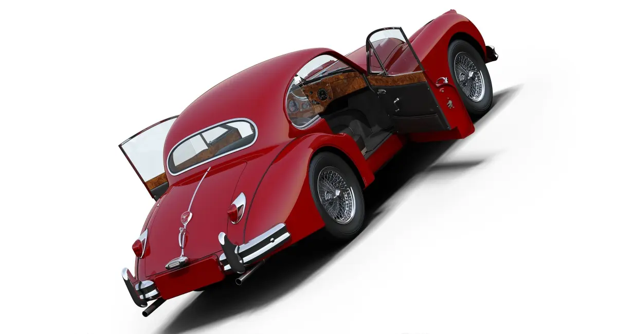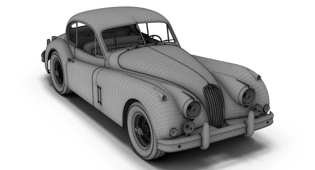 Detailed 3D model of a Jaguar XK140 fixed head coupé.