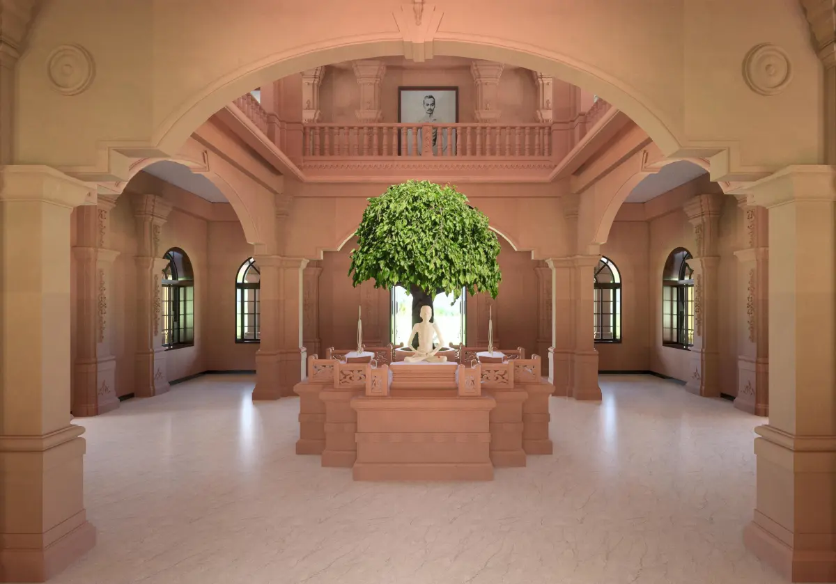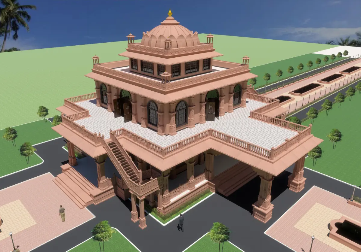 Design of a Jain temple for the Jain community in western Rajasthan, utilizing locally sourced stones and materials to integrate with the region's cultural and environmental context.