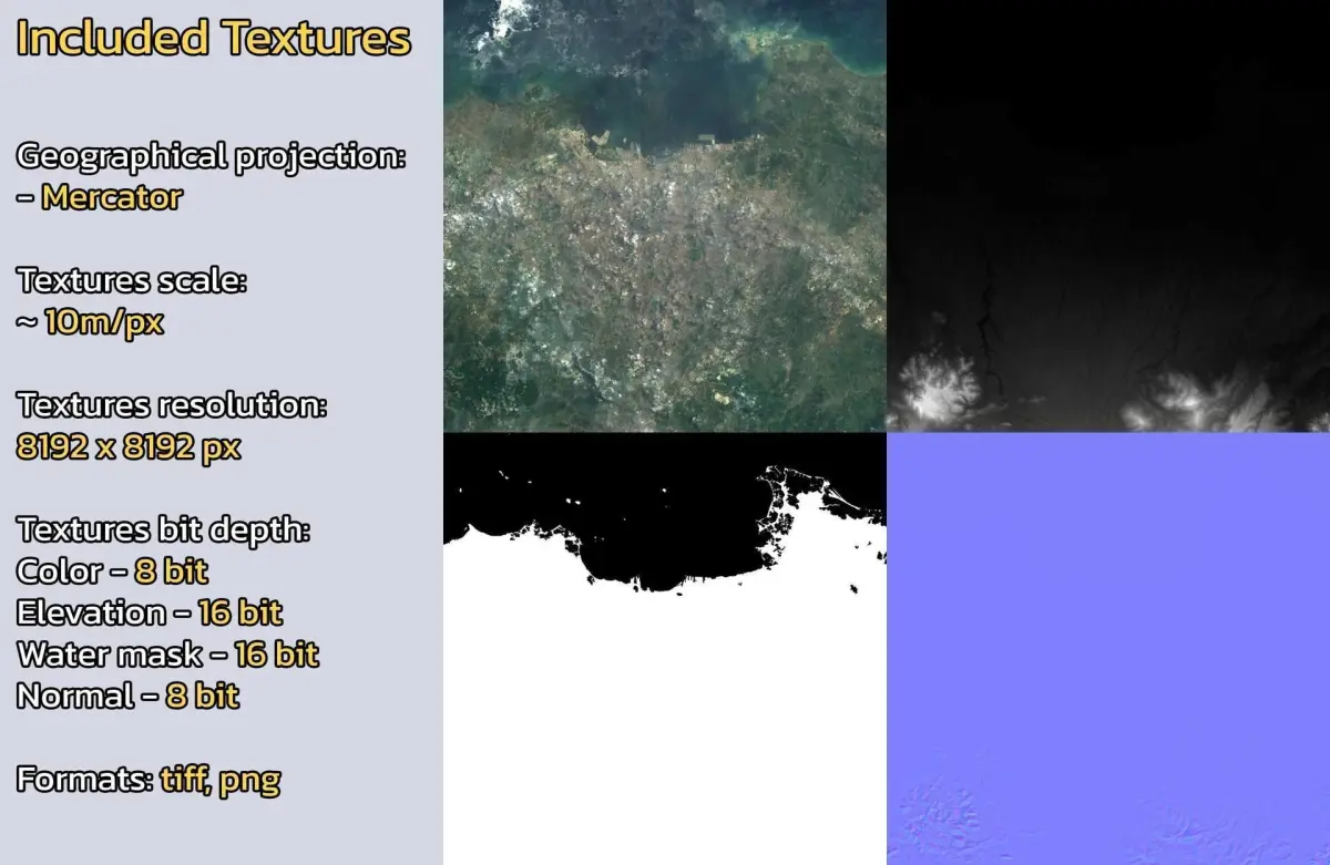 - Textures resolution: ~10m/px