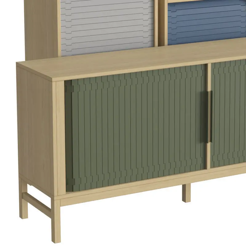 Jalousi is a versatile collection that can be used anywhere storage is required. for ring binders and office articles in an office environment, storage of glass and porcelain in the dining room, or for books and knickknacks in the living room. movable shelves make it easy to adapt the cabinets to meet individual needs.