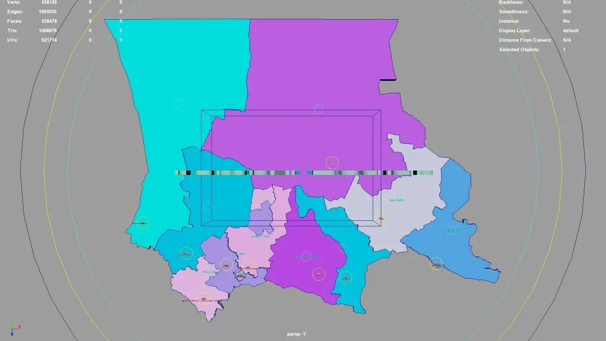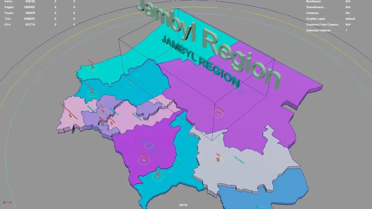 Jambyl Region regions : The model is divided according to the administrative region of Jambyl Region. Each region is clearly separated so you can easily isolate it or change the colors. Names are also editable and separate.